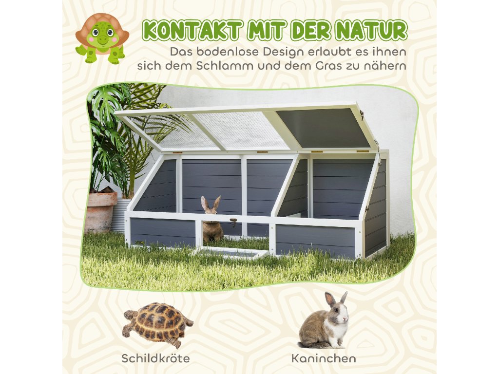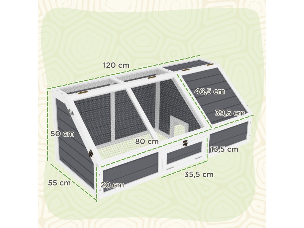 Ohrádka s domečkem pro drobná zvířata odklápěcí 120 x 50 x 55 cm světle šedá