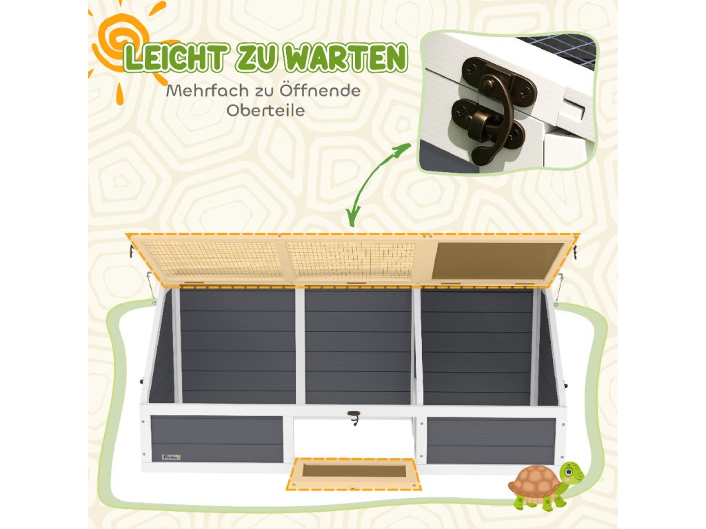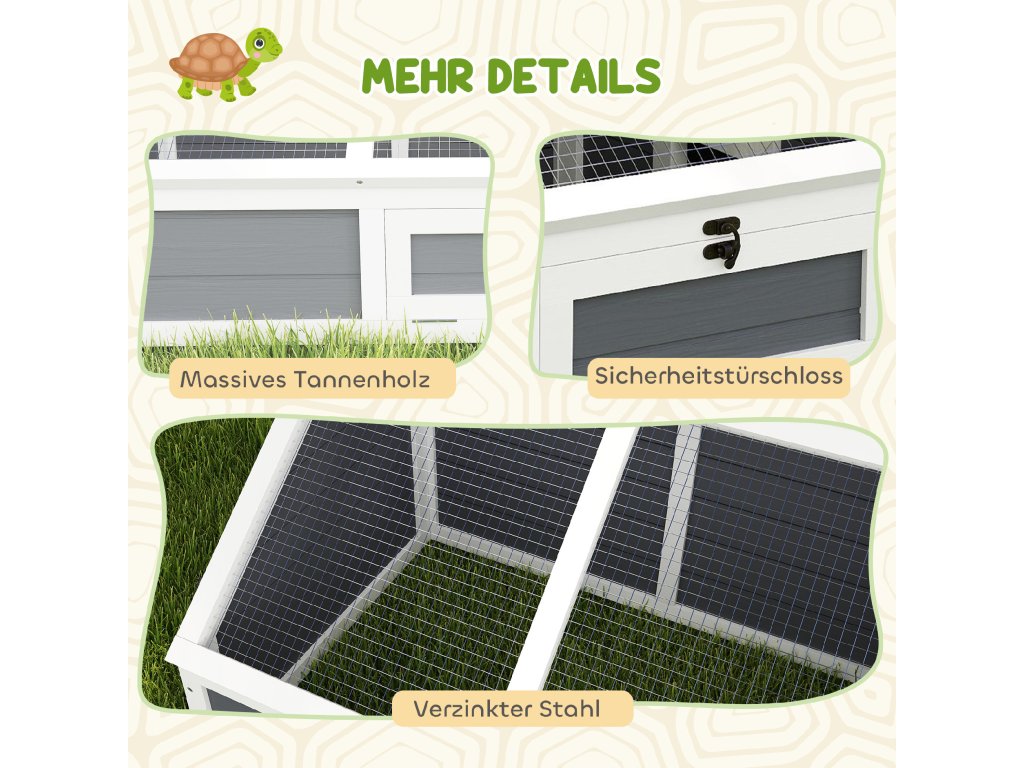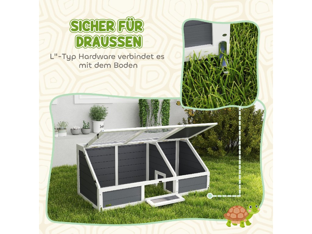 Domeček PawHut lze pevně ukotvit k zemi, aby se do něj nedostali nežádoucí hosté nebo zatoulaná domácí zvířata. Inovativní konstrukce bez dna je rozdělena na prostor pro vyhřívání a hlavní výběh, což umožňuje přímý kontakt s trávou, půdou nebo bahnem. Navíc díky snadno otevíratelnému víku je čištění hračka!