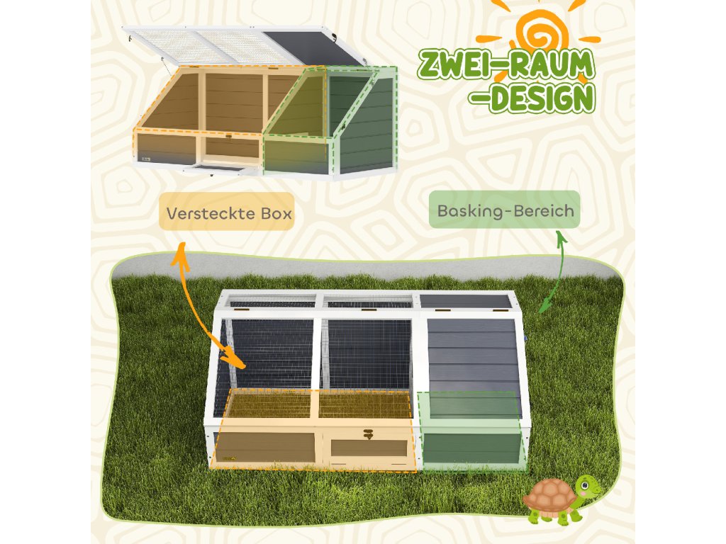 • Rozdělené prostory pro slunění a ochranný hlavní výběh zvyšují pohodlí zvířete