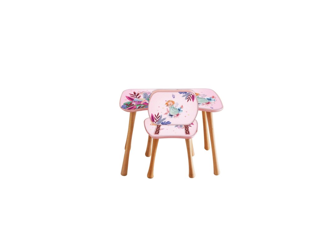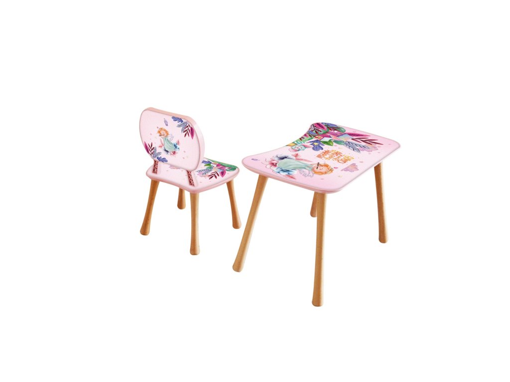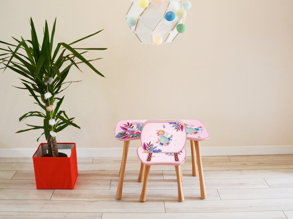 PSTK01 je sada stolku s židlí s dekorativním digitálně natištěným motivem malého andílka s flétnou.
