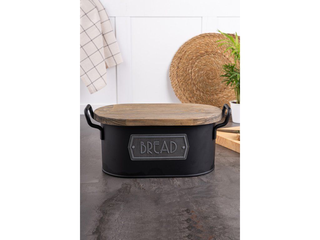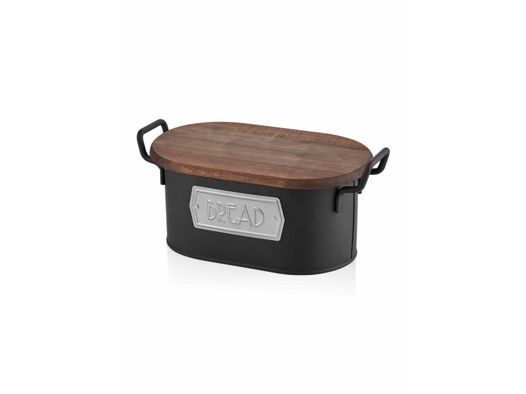 Kovový chlebník s dřevěným víkem použitelným jako prkénko uchová vaše pečivo déle čerstvé