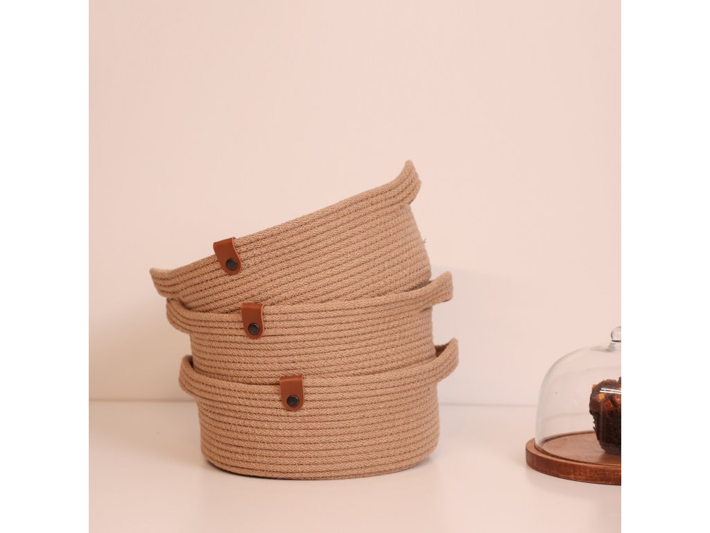 Vylepšete svou koupelnu pomocí naší nádherné sady bavlněných košů, která je navržena tak, aby do vašeho prostoru vnesla nádech elegance a funkčnosti. Tyto koše jsou vyrobeny ze 100% bavlněného jutového provazu a jsou nejen odolné, ale také šetrné k životnímu prostředí.