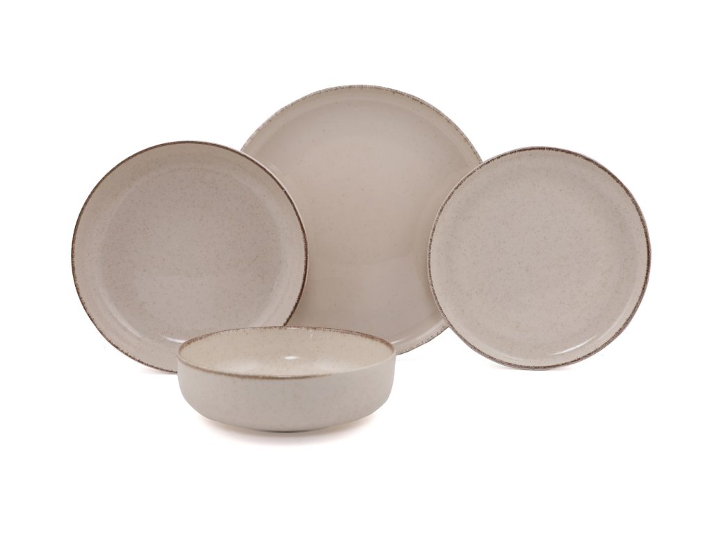 Porcelánová jídelní souprava (16 ks) krémová a hnědá