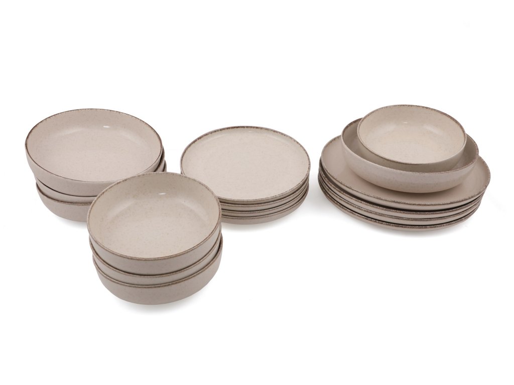 Naše jídelní souprava obsahuje řadu kusů, které uspokojí všechny vaše potřeby při stolování. Servírovací talíře o průměru 24 cm jsou ideální pro servírování hlavních chodů, zatímco dezertní talíře o průměru 21 cm dodají vašemu jídlu nádech sladkosti. Talíře o průměru 20 cm jsou ideální na předkrmy nebo přílohy a mísy o průměru 15 cm jsou ideální na polévky, saláty nebo dezerty. Tato všestranná sada je navržena tak, aby splnila všechny vaše požadavky na stolování.