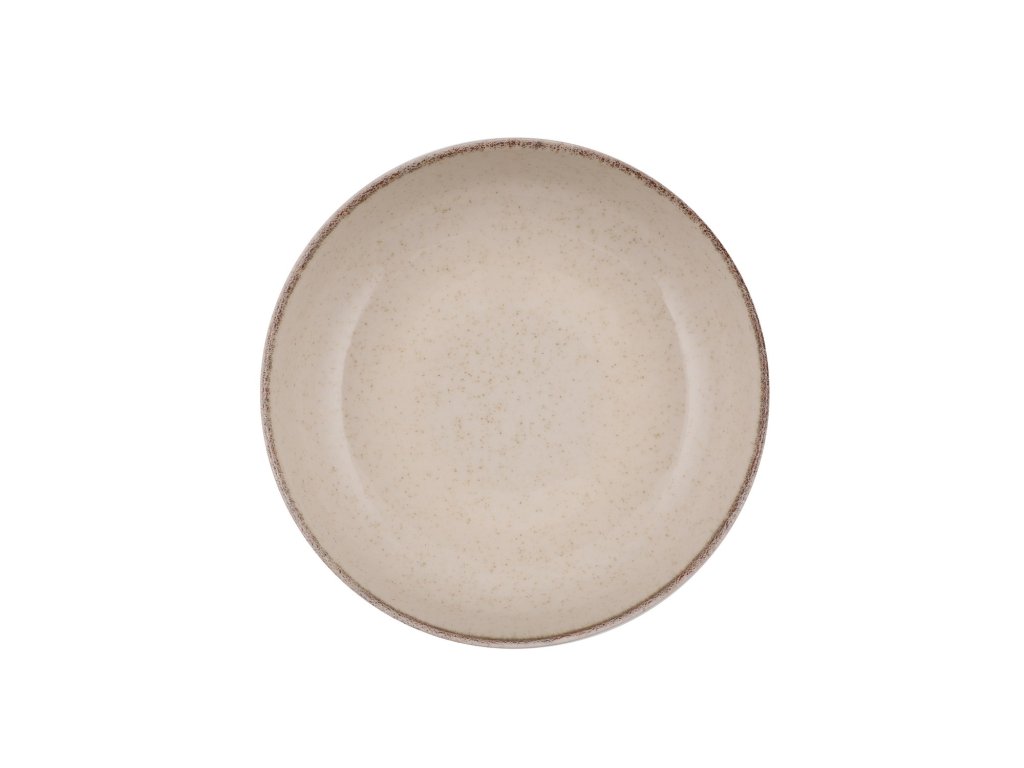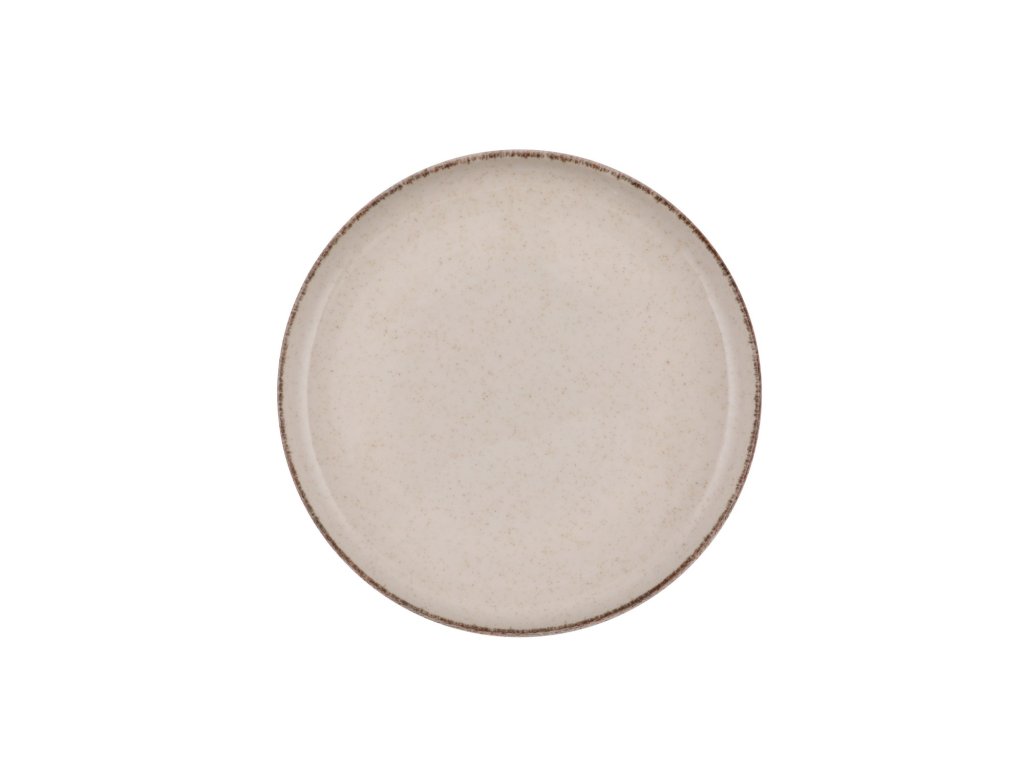 Porcelánová jídelní souprava v krémové barvě s hnědými okraji.