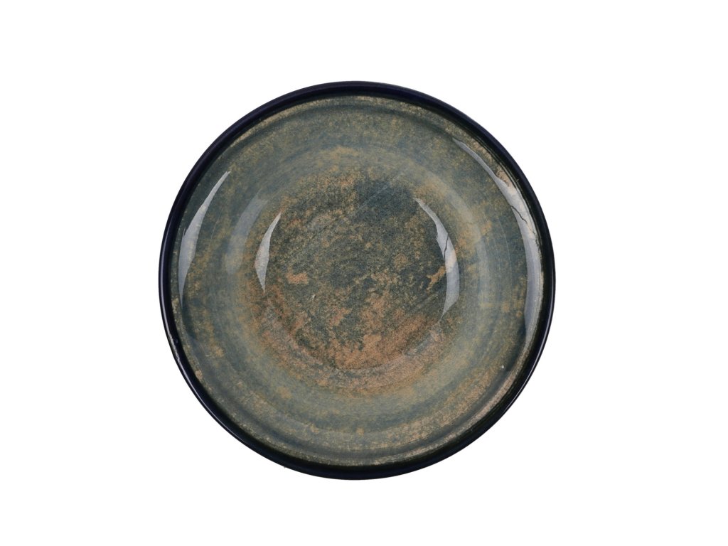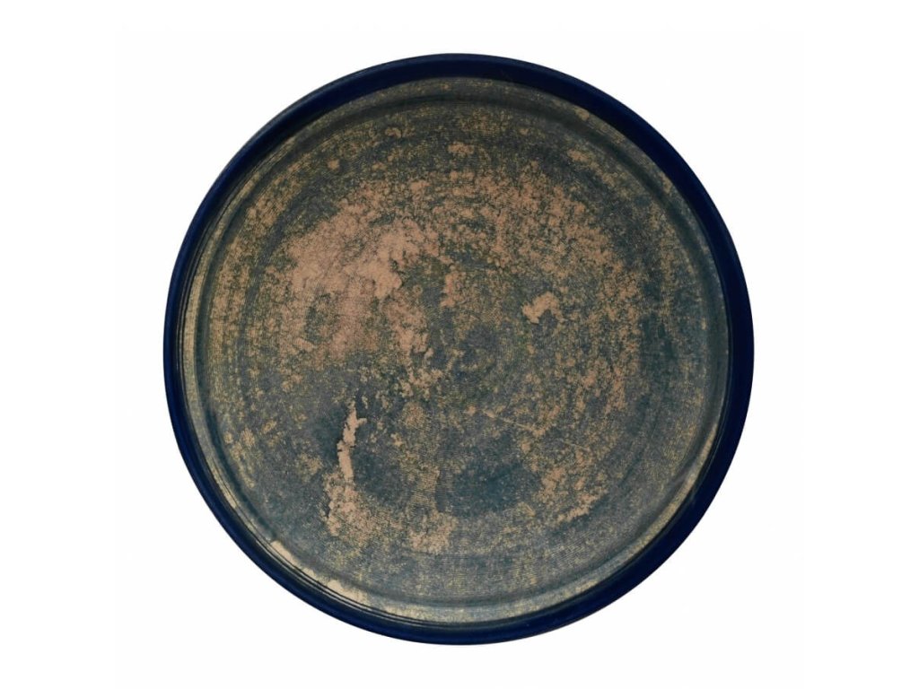 MOSS je souprava jídelního NANO porcelánu, která je dekorativně ozdobena abstraktní směsí temně modré a zelené barvy.