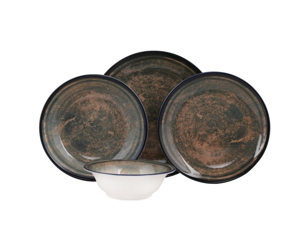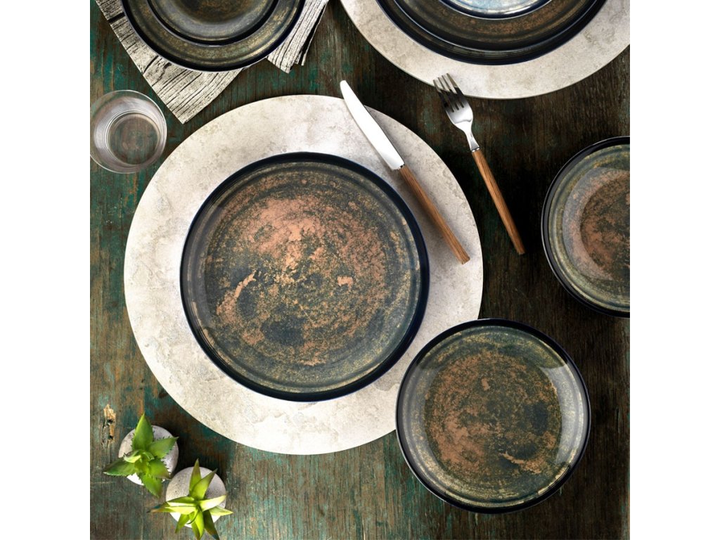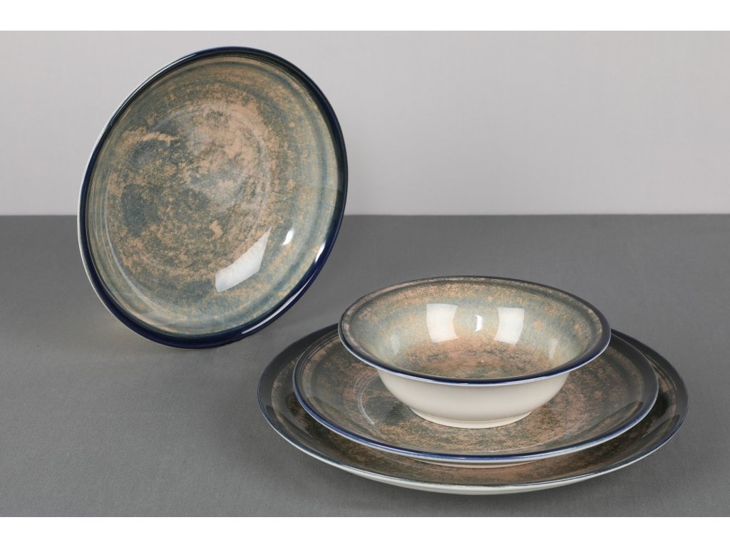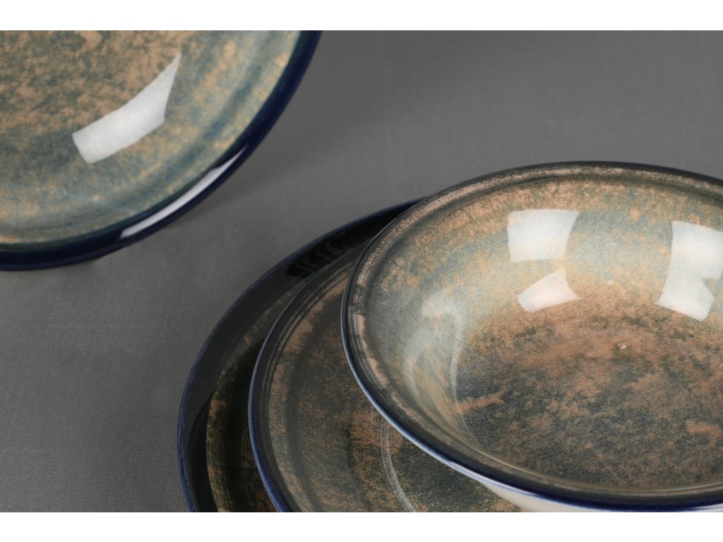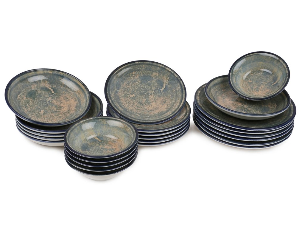 Porcelánová jídelní souprava 24 ks MOSS tmavě modrá zelená