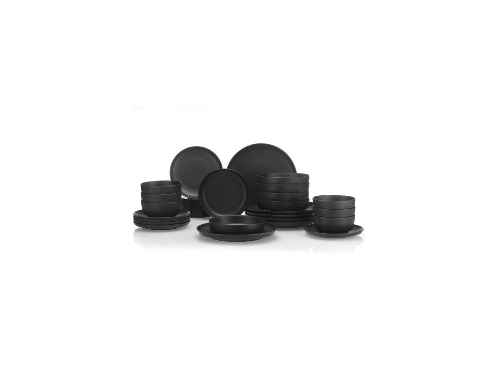 Porcelánová jídelní souprava VINE se skládá z 24 kusů matně černého porcelánu vhodného pro velké rodiny, nebo jako servis pro oslavy.