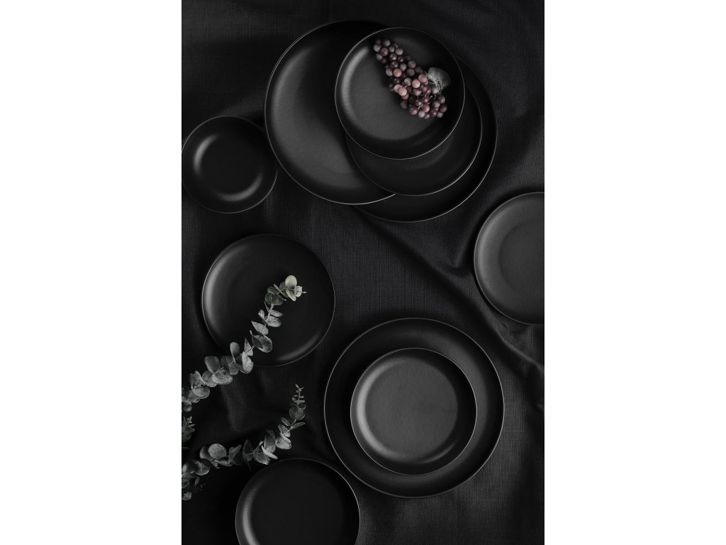 Souprava VINE Vám nabízí tři druhy talířů a hluboké misky v matné černé barvě s dekorativní plastickým lemem po obvodu každého kusu.