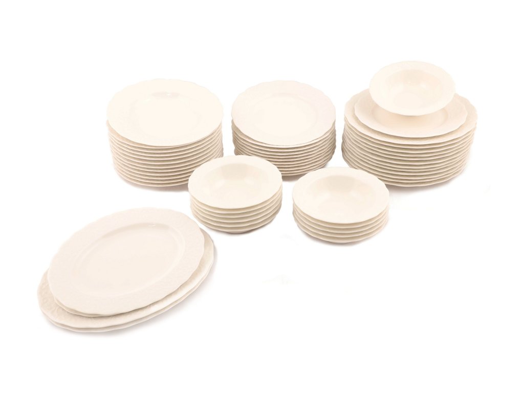 Porcelánová jídelní souprava RUSTIK se skládá z 52 kusů bílého porcelánu vhodného pro velké rodiny, nebo jako servis pro oslavy.