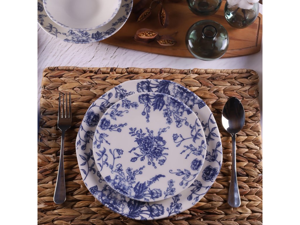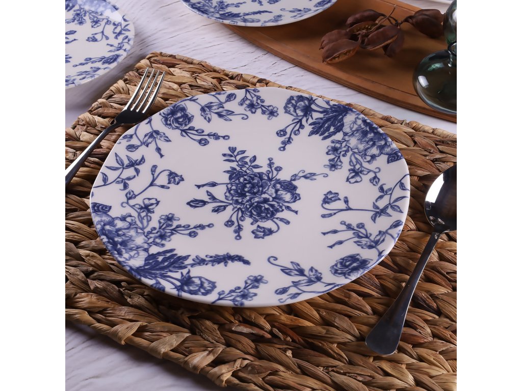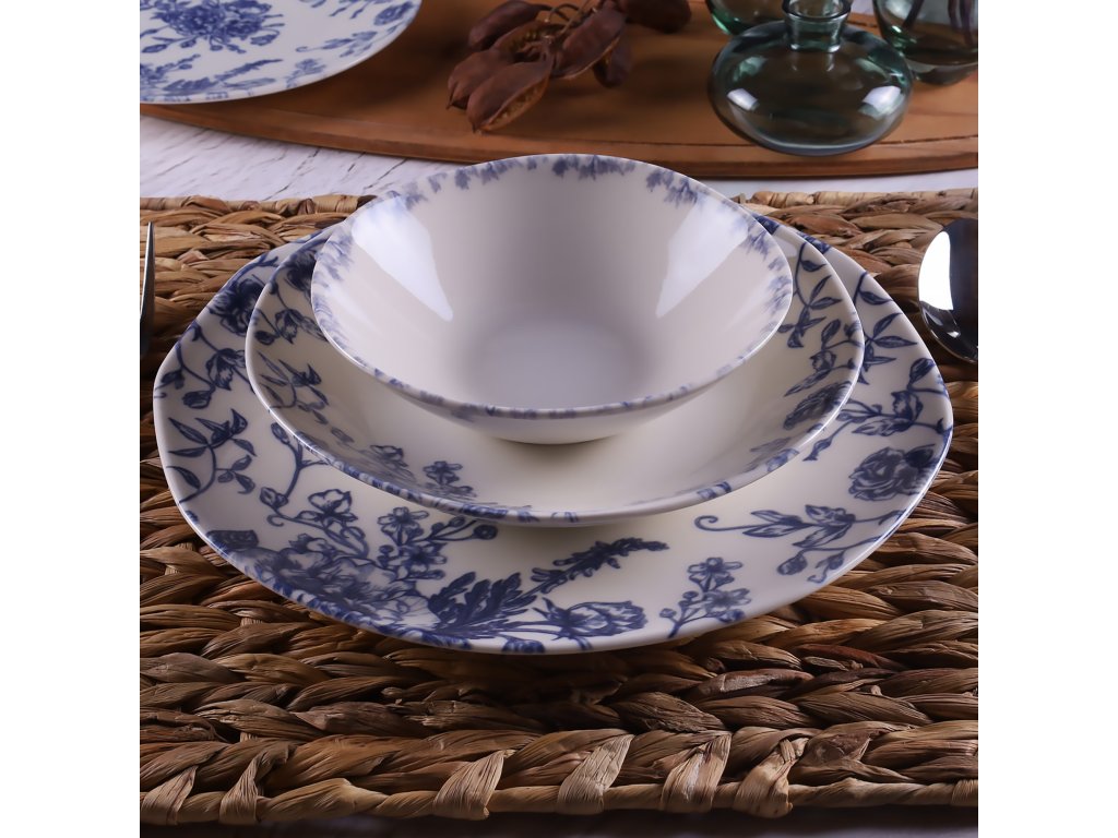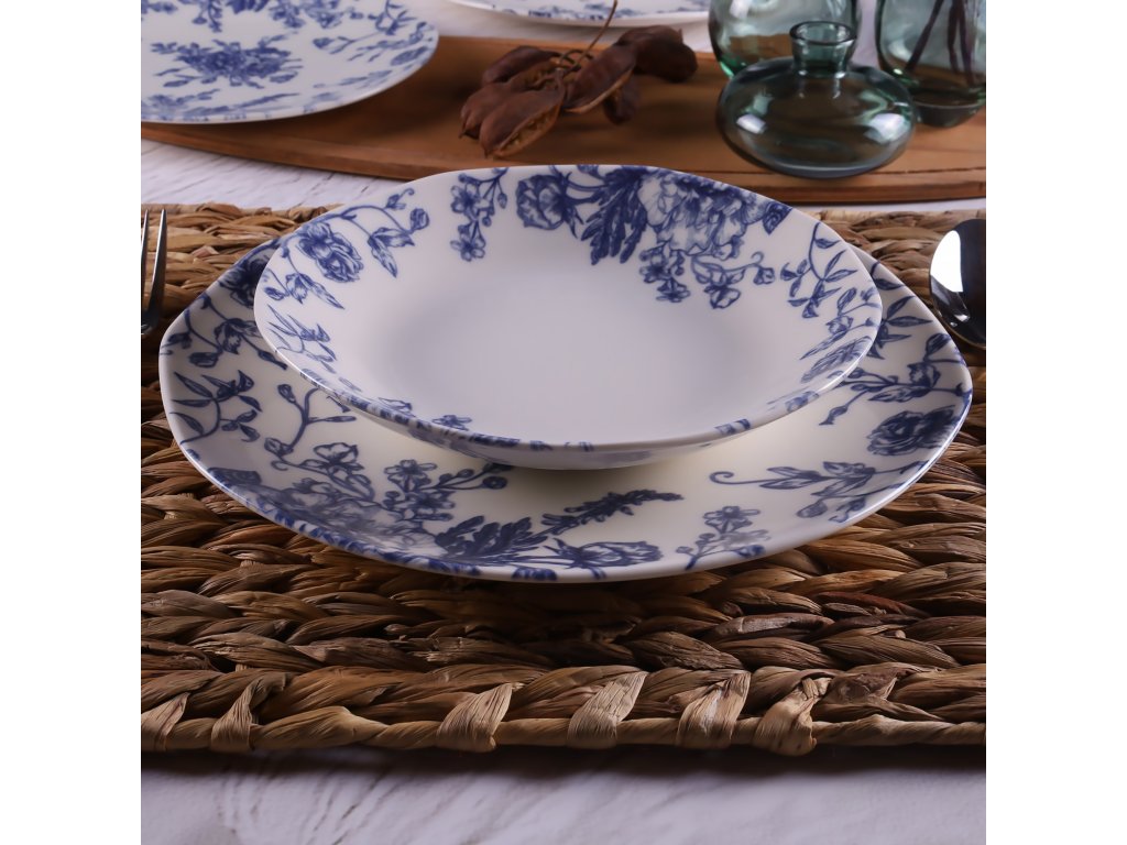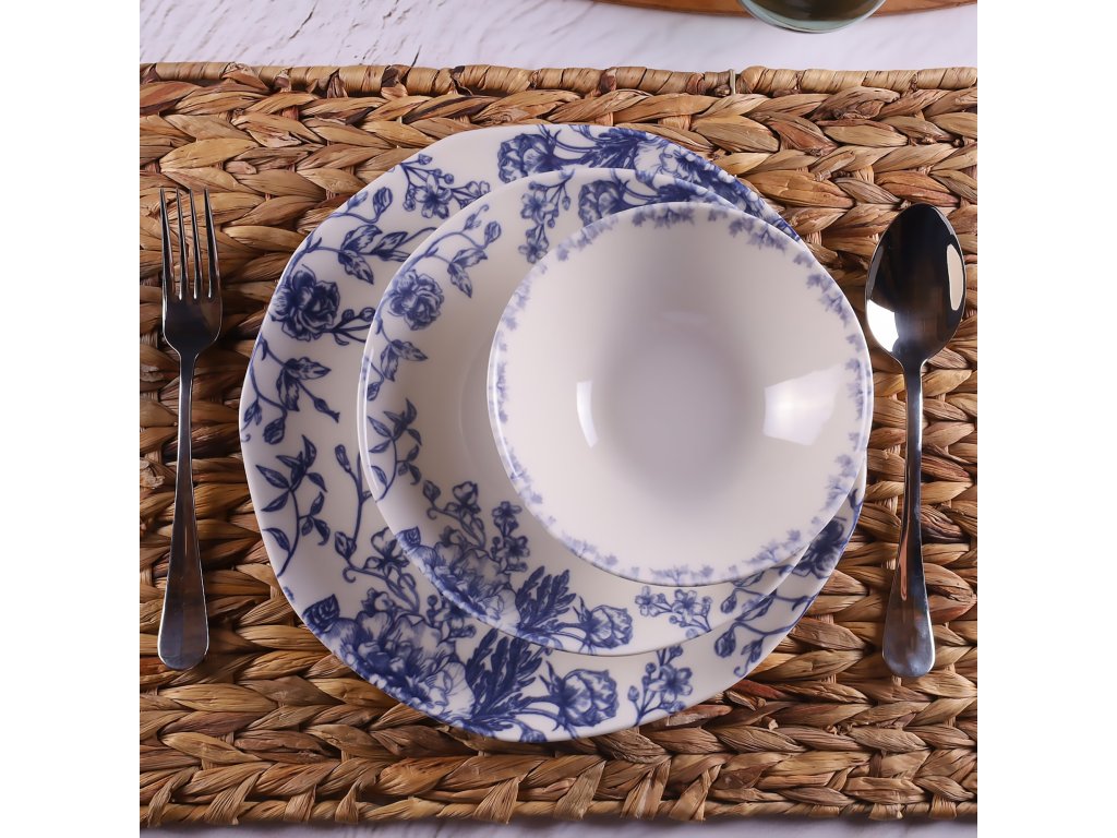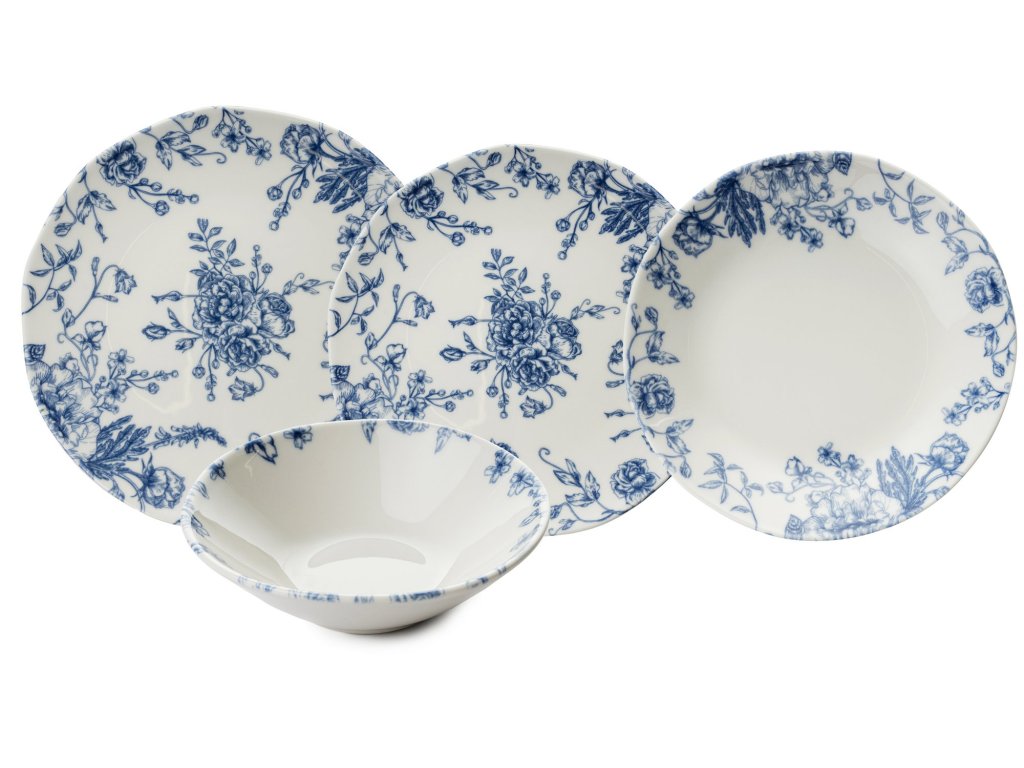 Moderní 24 dílná porcelánová jídelní souprava s klasickými modrými motivy
