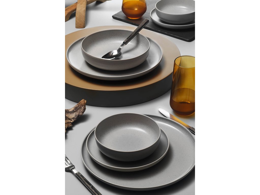 Elegantní 16 dílná porcelánová jídelní souprava Poppy ve světle šedé barvě