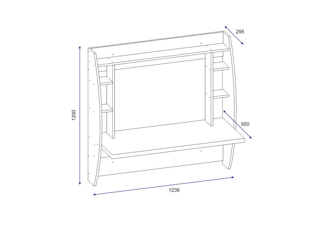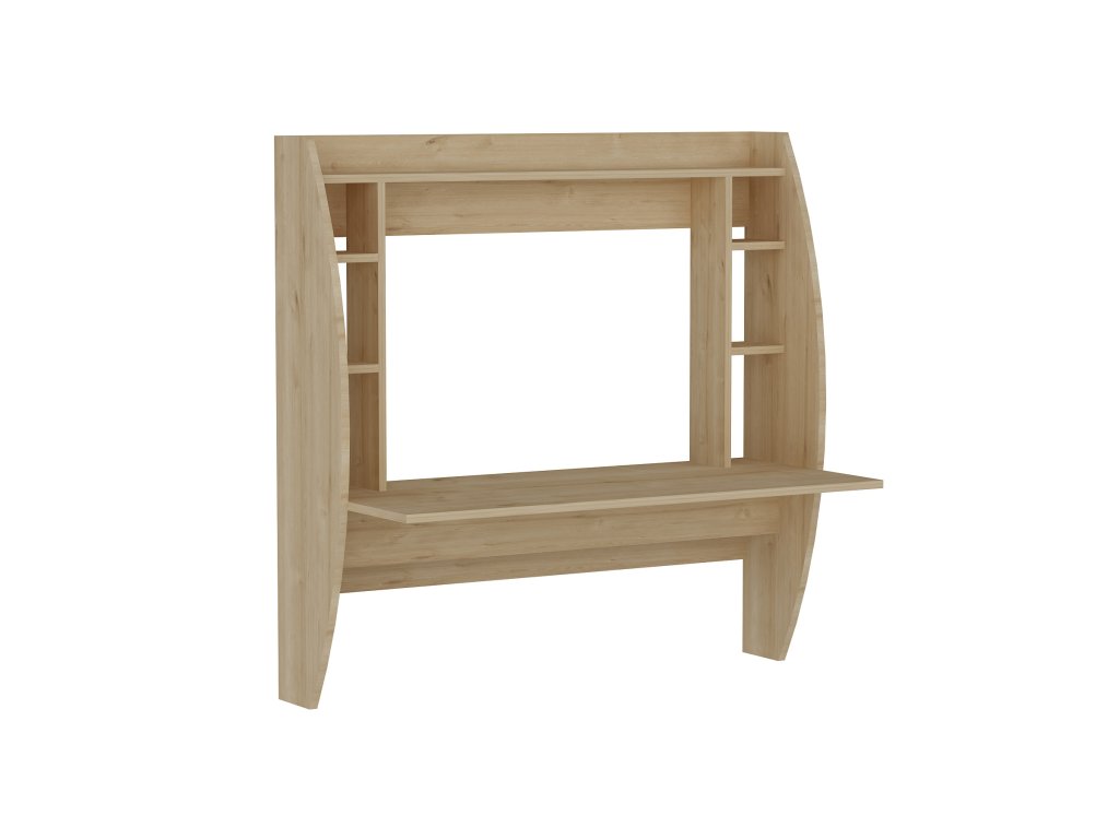 Nástěnný psací stůl BUGLEM je vyroben v dekoru dub sapphire a nabízí nejen pracovní desku, ale i drobné odkládací plochy po celém obvodu stolu.