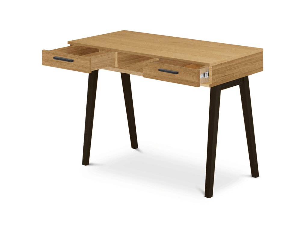 Konstrukce skandinávského psacího stolu FRISK je podepřena vysokými, pevnými nohami z masivního dřeva. Díky nim si nábytek zachovává vynikající stabilitu.