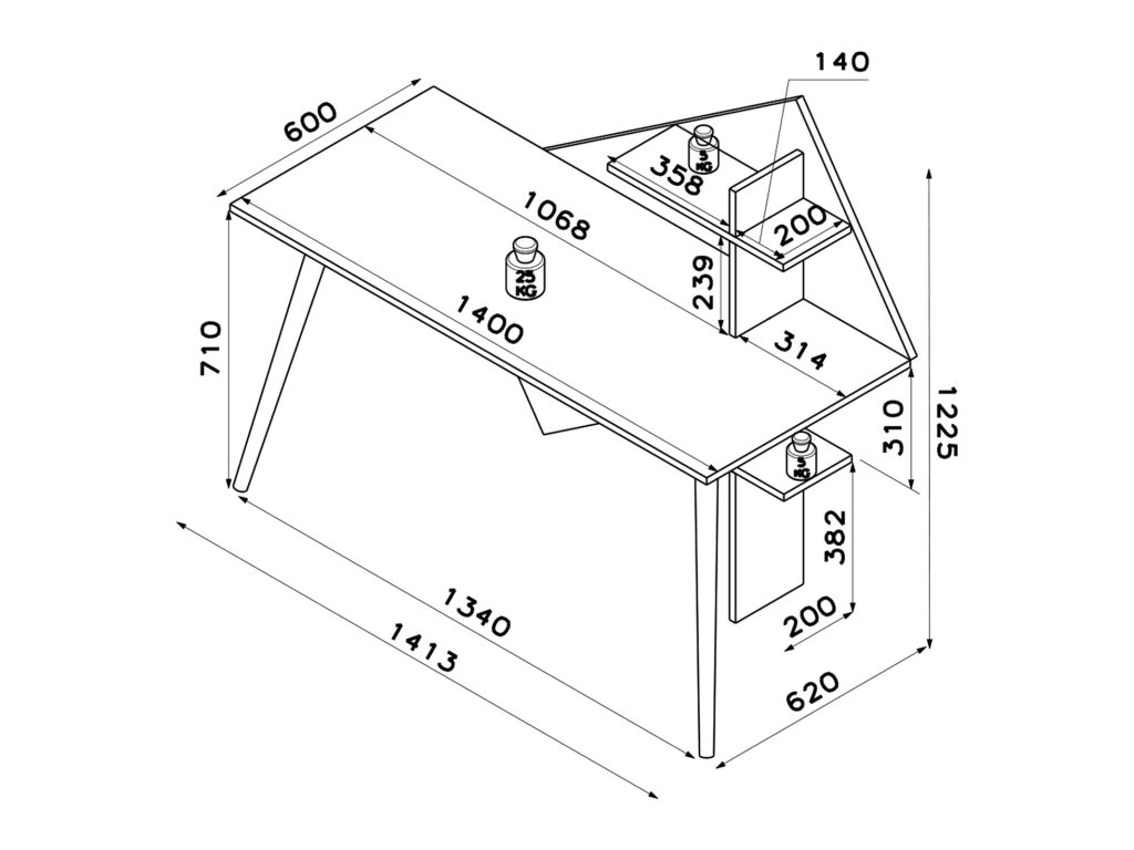 Je vyroben z 18 mm silných desek pokrytých 100 % melaminem v dekoru dub a v antracitové barvě.