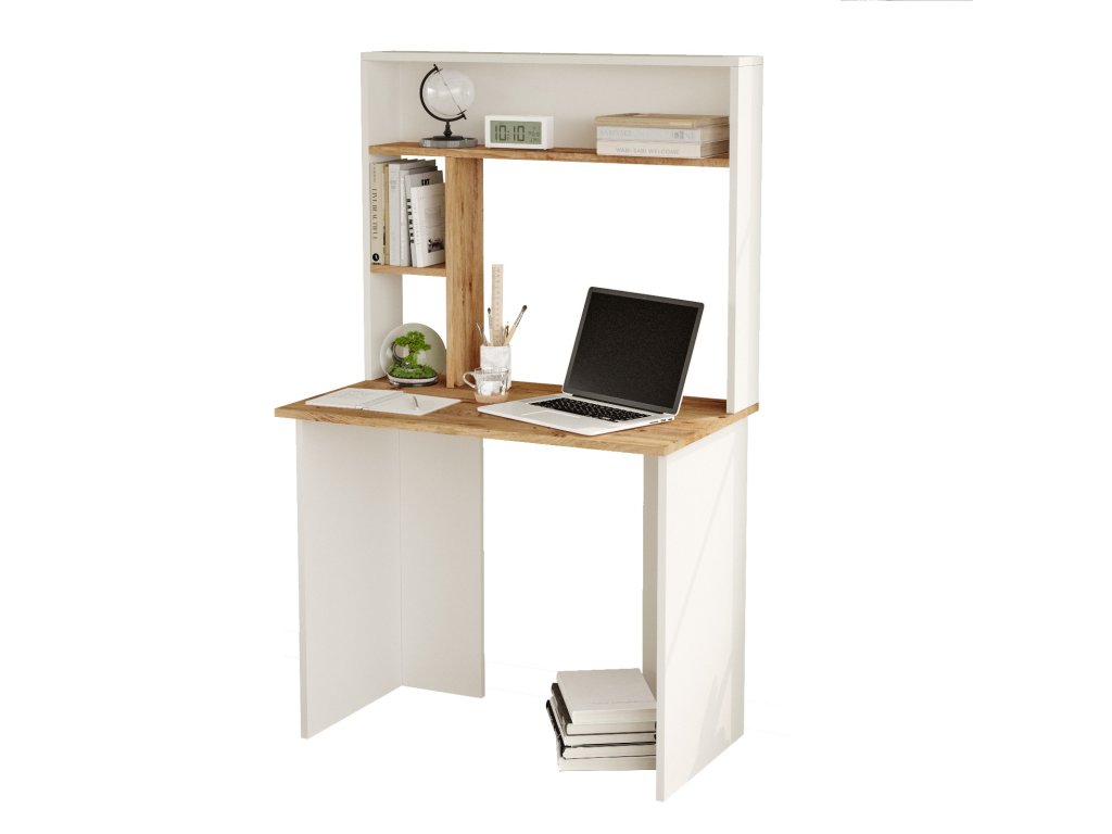 Moderní bílý psací stůl s policí BR2 v provedení borovice atlantic