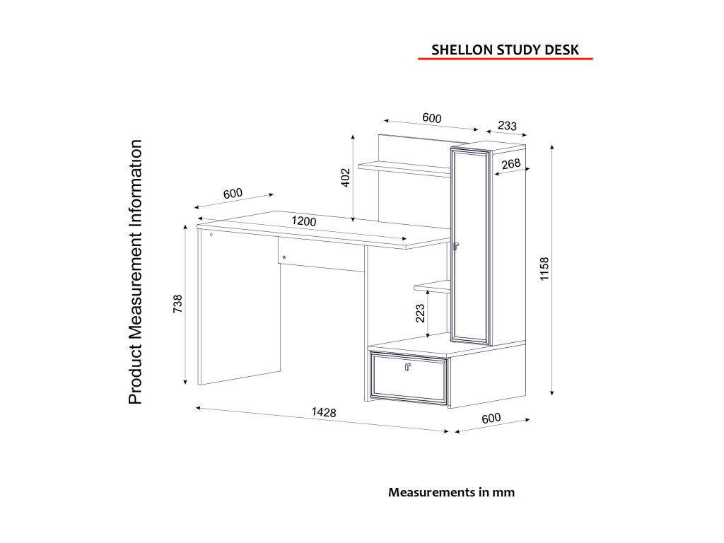 Víceúčelový psací stůl SHELLON je praktickou sestavou nejen pracovní desky, ale i odkládacích polic a dvou skříněk.
