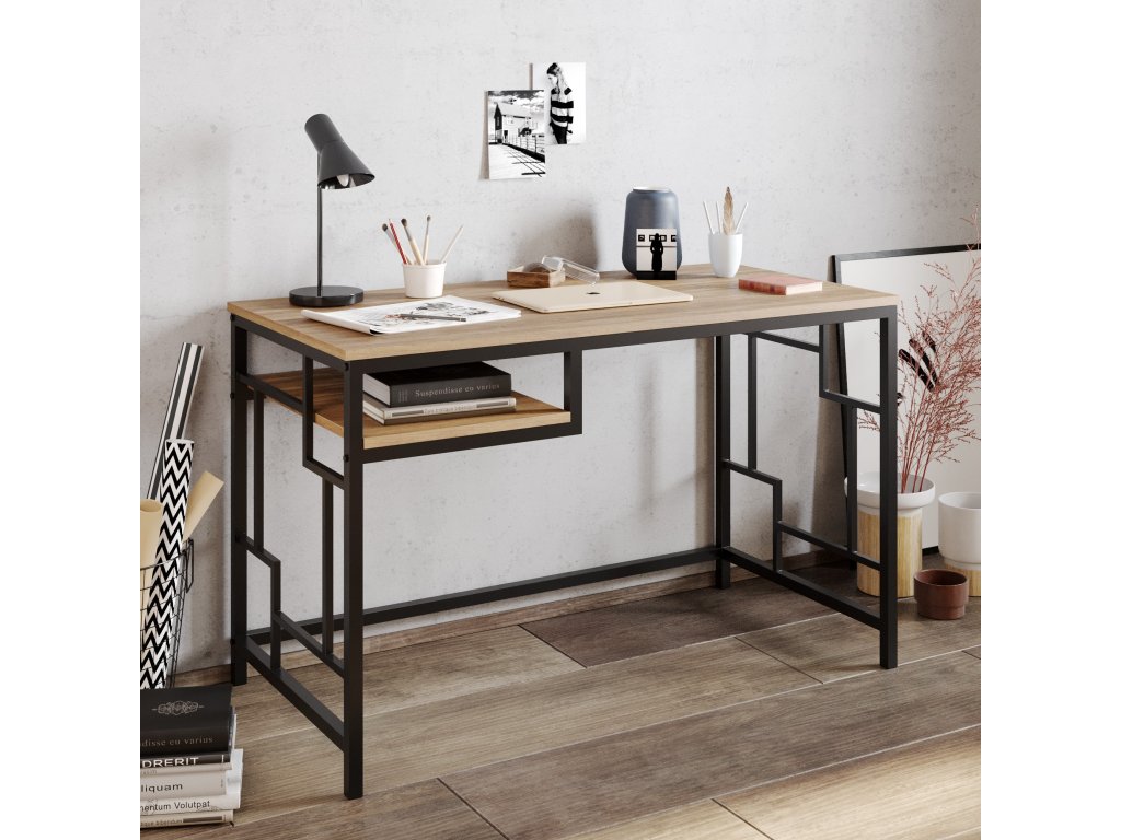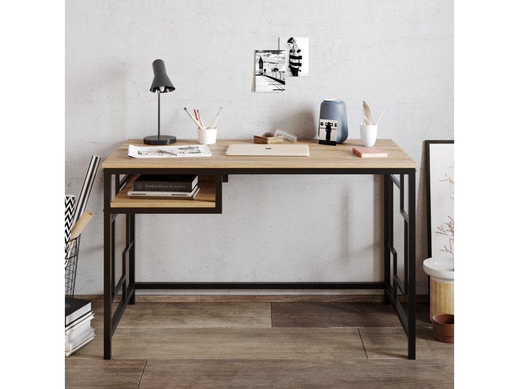 Psací stůl VICTORY je prakticky na kovových nohách ležící prostorná deska doplněná o malý regál sloužící jako otevřená zásuvka.