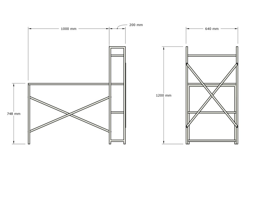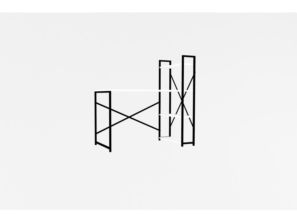 Je vyrobený z kovu černé barvy a z 18 mm silných desek pokrytých 100 % melaminem v bílé barvě.