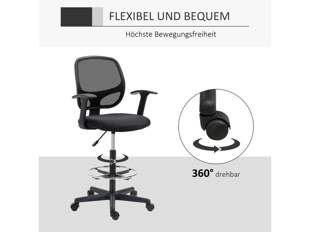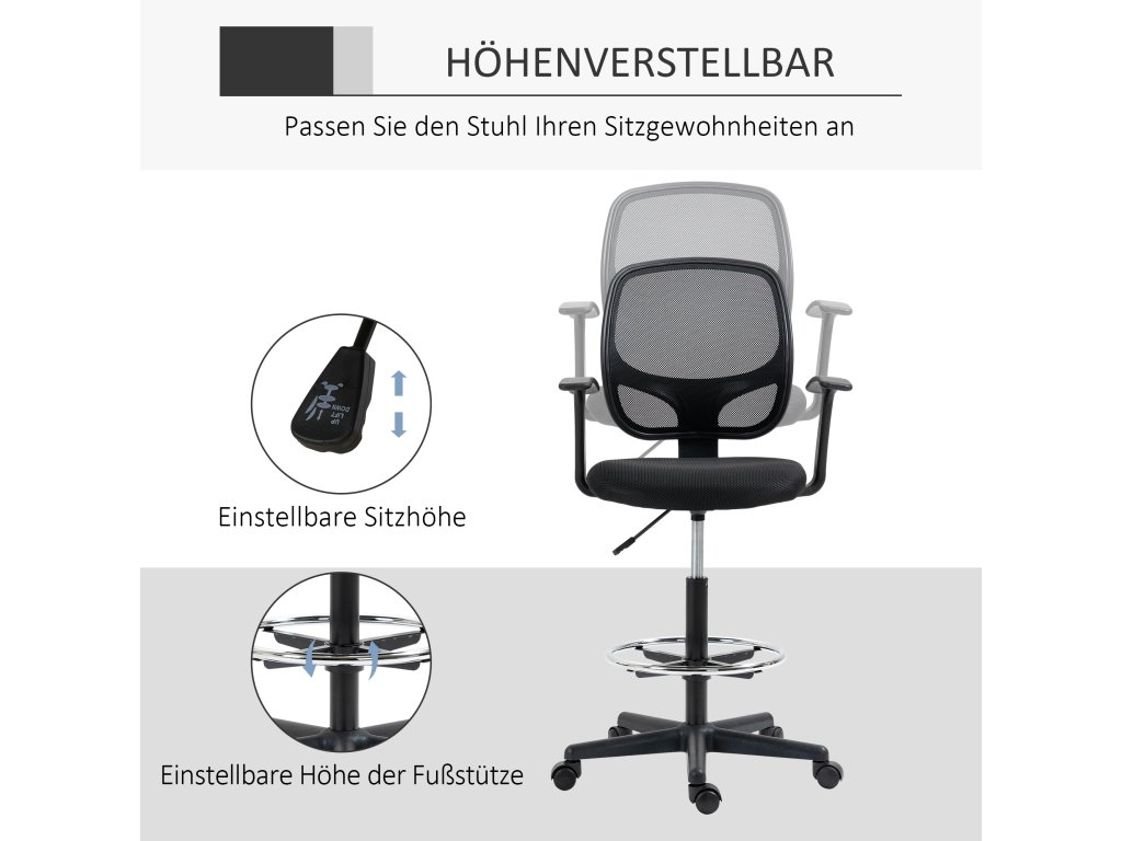Kancelářská židle přichází v moderním designu, která kombinuje měkce polstrovaný sedák a opěrák z prodyšné síťoviny. Výšku sedadla lze nastavit od 65,5 cm do 87 cm, aby vyhovovala vašemu stolu a stylu sezení. Opěrka nohou chrání vaše nohy a je ideální pro práci u kreslících stolů a stolů ve stoje. Kancelářská židle je vybavena pevnou základnou, která unese až 120 kg. Základna židle obsahuje 5 otočných koleček umožňujících dobrou mobilitu a flexibilní práci. Toto kancelářské křeslo tedy nabízí pohodlí ve všech směrech.