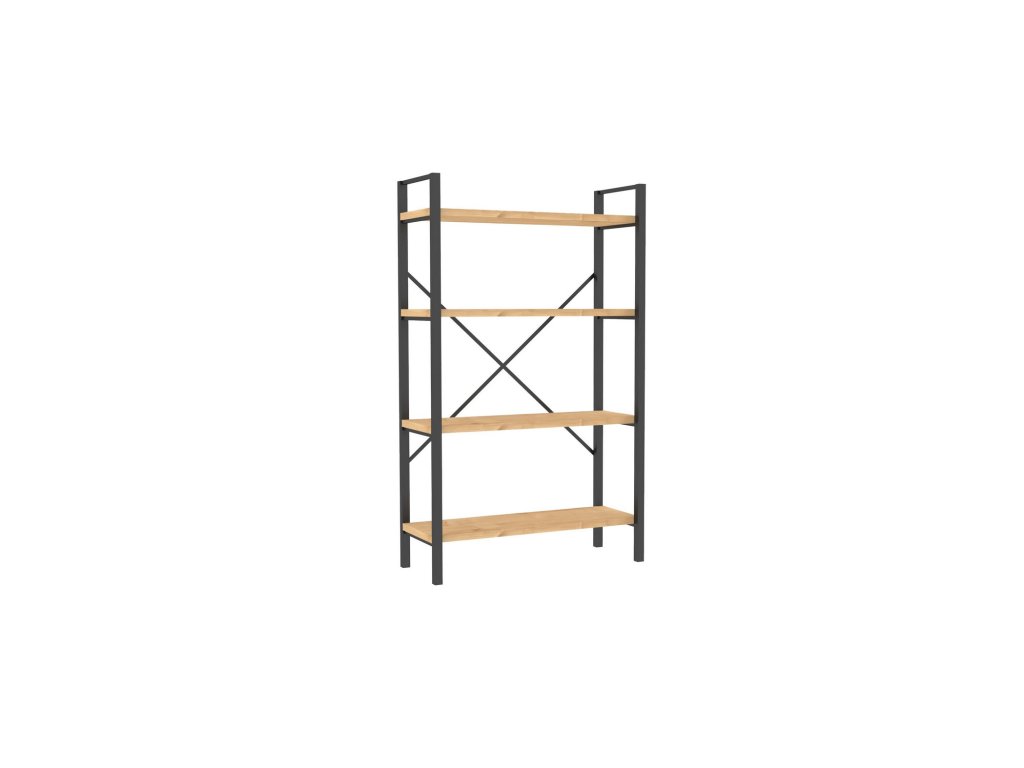 Knihovnu MINA tvoří soustava čtyř v dekoru dub sapphire vyrobených regálů ukotvených v černém kovovém rámu.