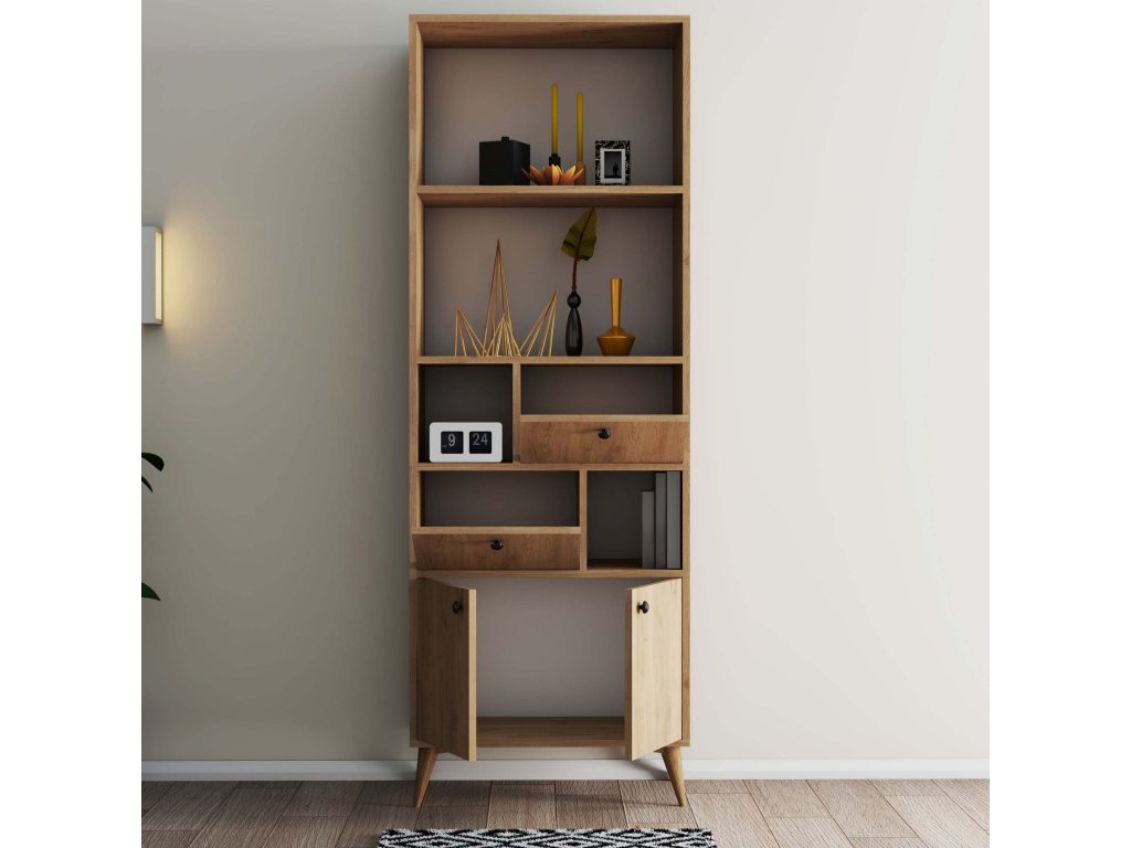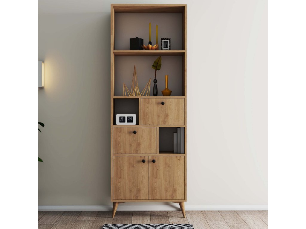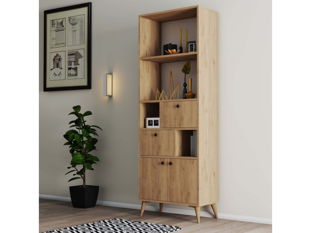 Nádherná dubová barva této knihovny dodá každému pokoji nádech sofistikovanosti. Její teplé a příjemné tóny vytvářejí útulnou atmosféru, takže je dokonalým doplňkem vašeho obývacího pokoje, ložnice nebo domácí kanceláře. Pozvedněte svůj prostor tímto nadčasovým kusem nábytku, který se bez problémů hodí k jakémukoli stylu zařízení.