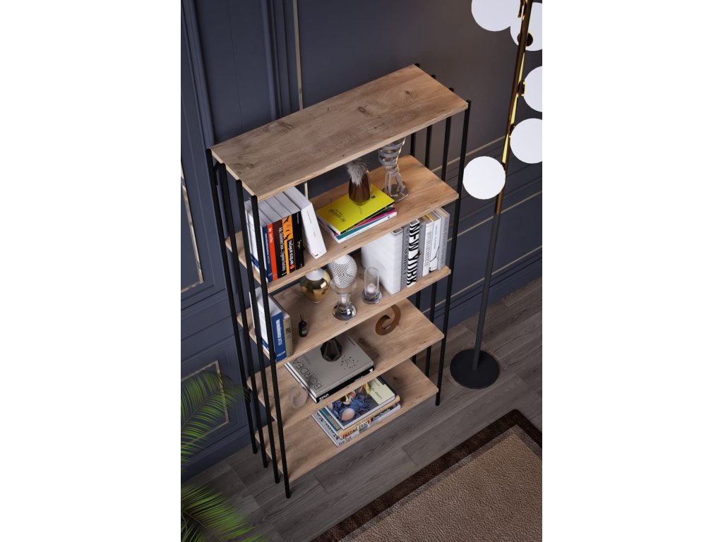 Díky velkorysým rozměrům 72 cm na šířku, 150 cm na výšku a 26 cm do hloubky nabízí tato police dostatek prostoru pro vystavení vašich oblíbených knih, fotorámečků a dekorativních předmětů. Robustní kovový rám zajišťuje stabilitu a odolnost, takže můžete bez obav ukládat své věci.
