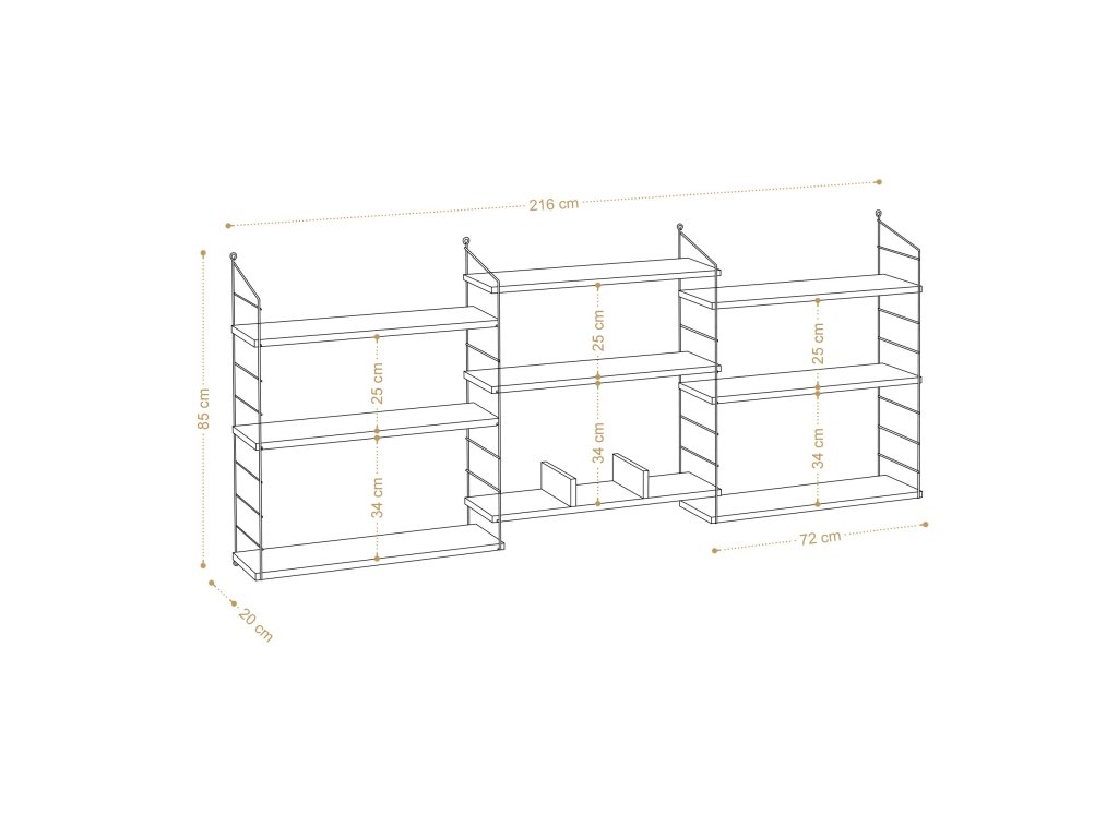 Výška police: 25 cm a 34 cm