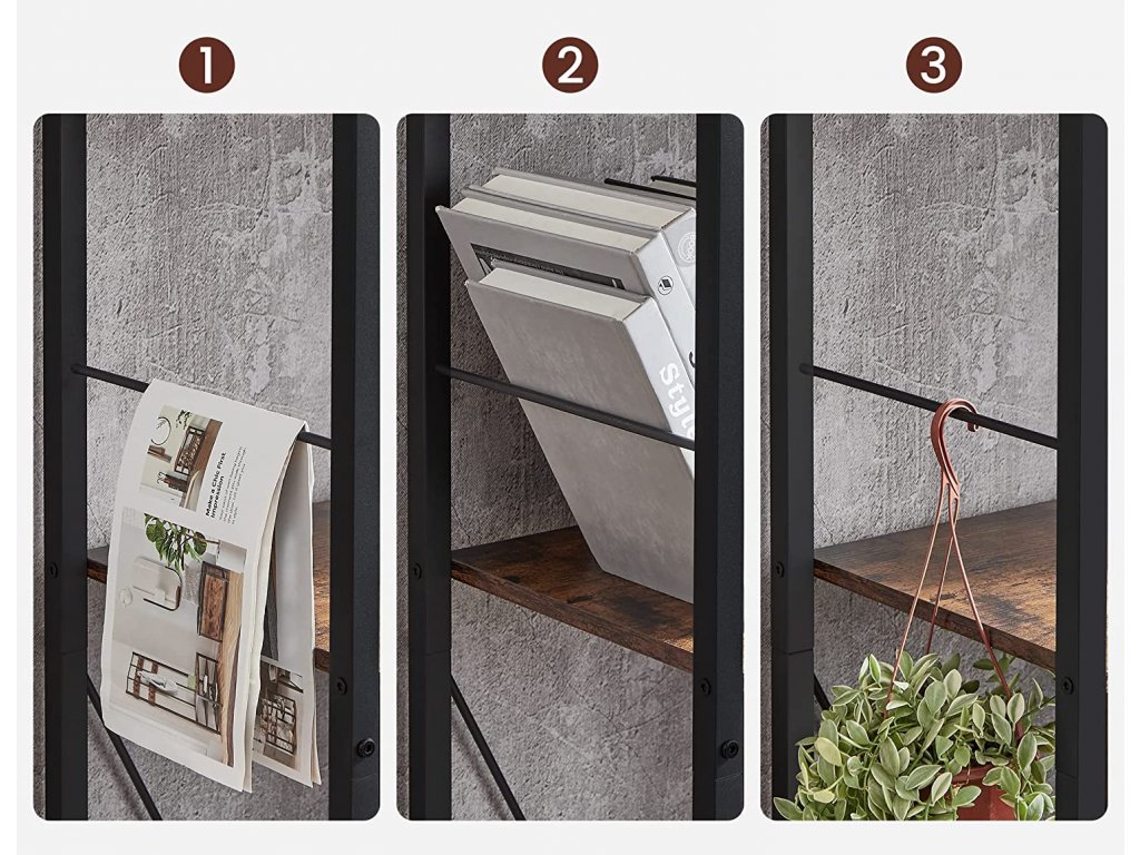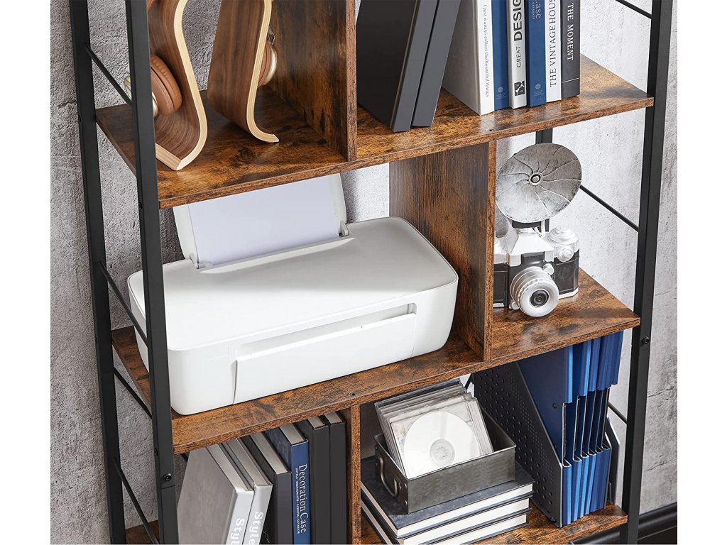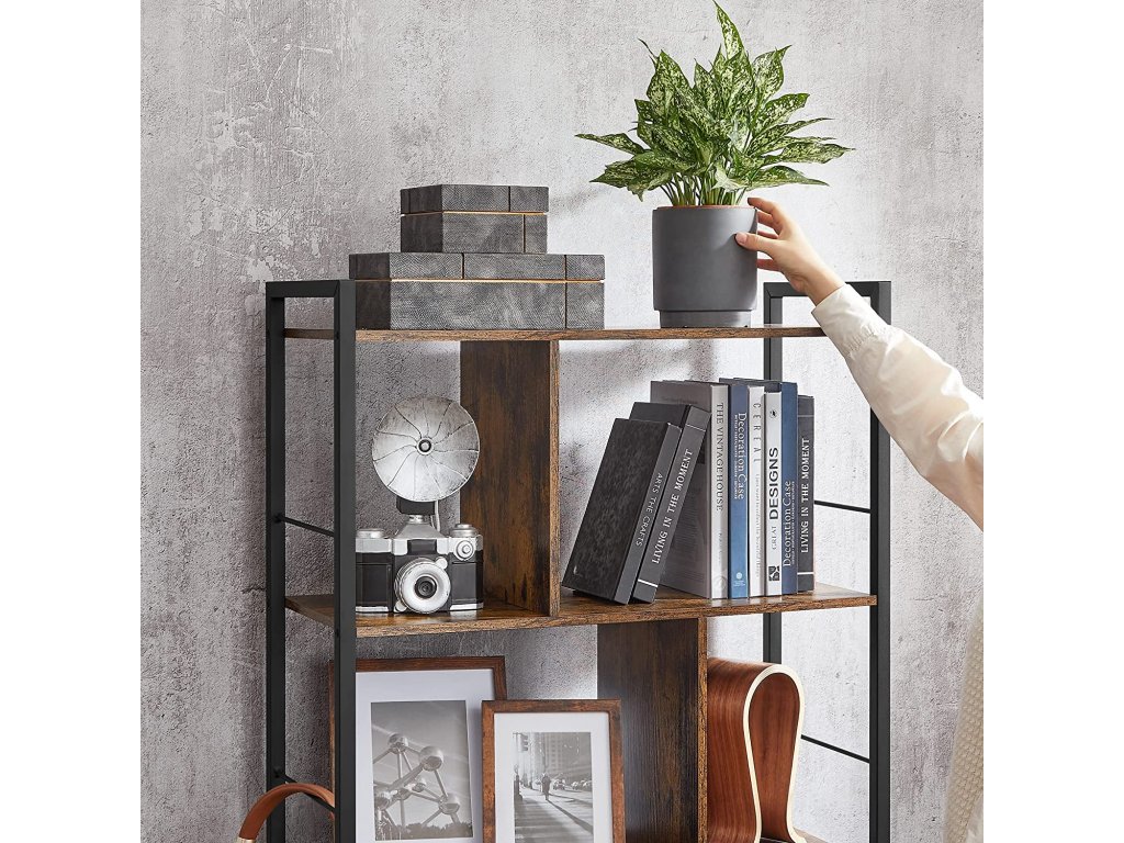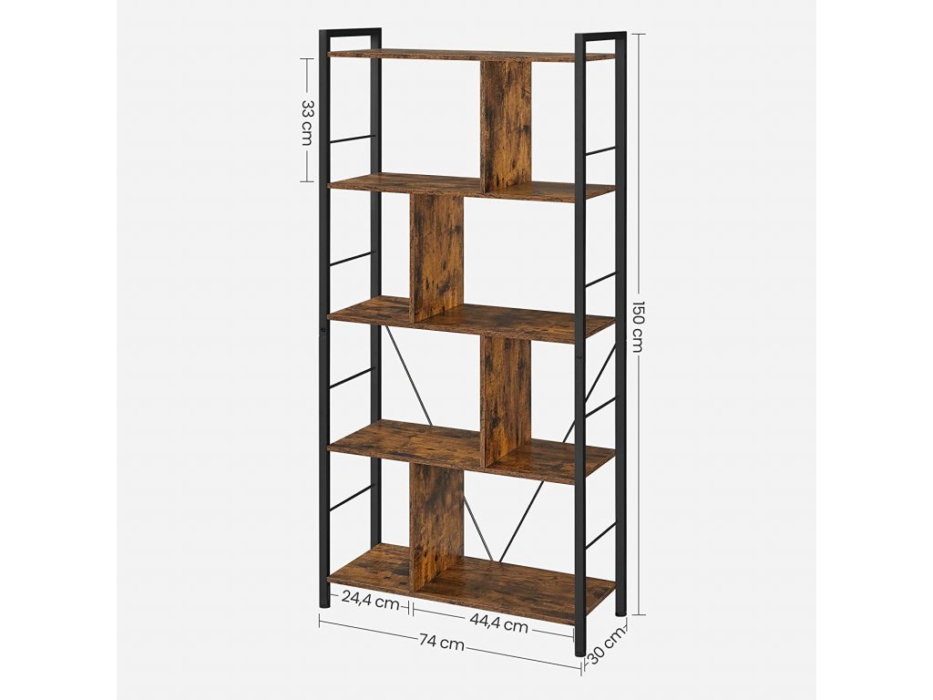 Je vyrobený z černého ocelového rámu a z kvalitních MDF desek v dekoru rustikální hnědé barvy.
