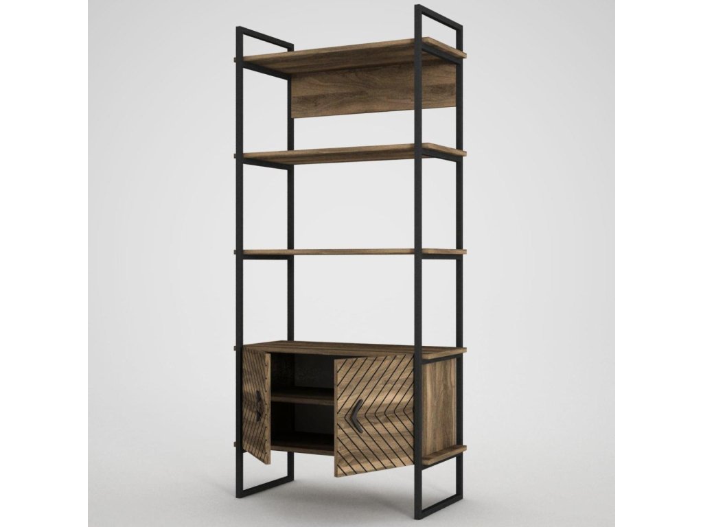 SCALA je policový regál s poličkami v dekoru ořech a kovovou, stabilní konstrukcí. Tento regál má všestranné využití, od police na oblečení až po výstavku na dekorace.