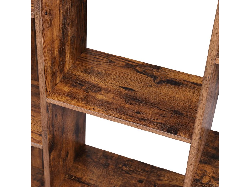 Originální regál ve tvaru širokého stromu nebo kaktusu. Jednoduchá a elegantní konstrukce z rustikální hnědé dřevotřísky.