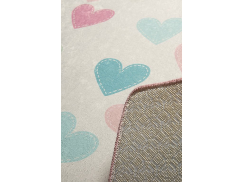 Koberes s protiskluzovou spodní stranou s motivem srdíček zahřeje každé dětské srdce.