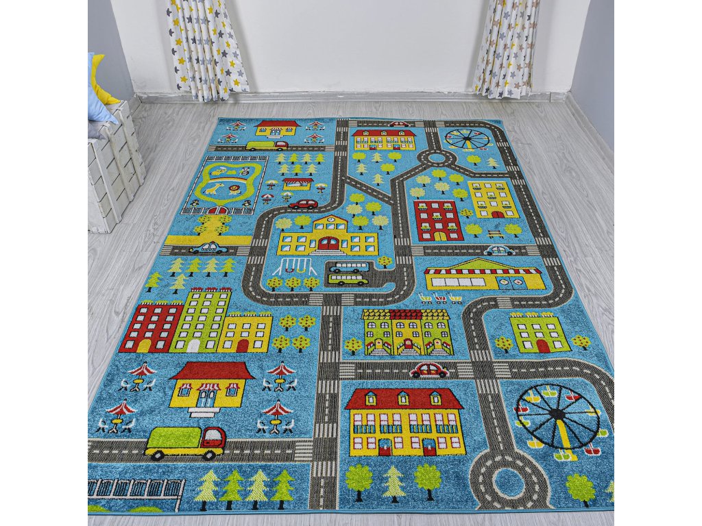 Dětský koberec (140 x 200) SEHIR modrý – silnice