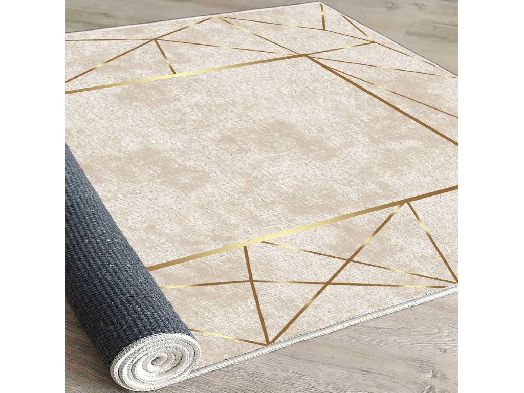 Koberec (120 x 180) ELS2400 béžový a zlatý geometrický vzor