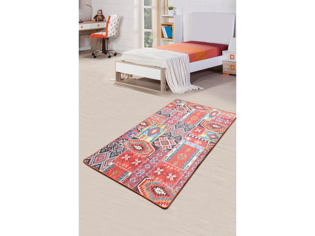Koberec (140 x 190) PATCHWORK barevný vzor červený