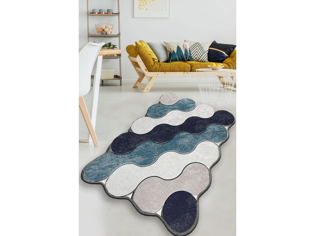 Náš koberec (150 x 240) je umělecké dílo, které se vyznačuje podmanivou kombinací modré a tmavě modré a bílé a béžové barvy. Tato harmonická kombinace dodá vašemu prostoru hloubku a charakter a učiní z něj skutečný výjimečný kousek.