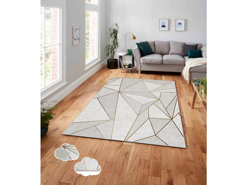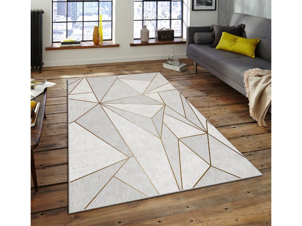 Koberec(100 x 180 cm) ASR CRPT-106 bílý a zlatý geometrický vzor