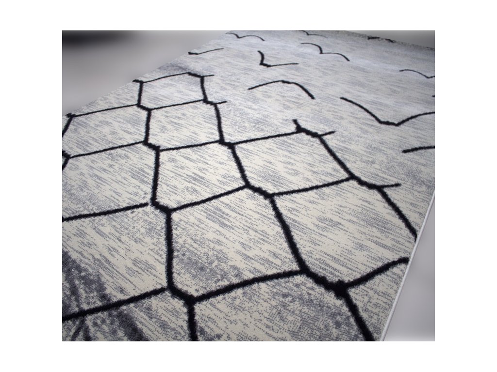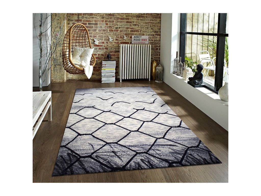Koberec se vzorem "plotu" v krémovo šedé barvě.