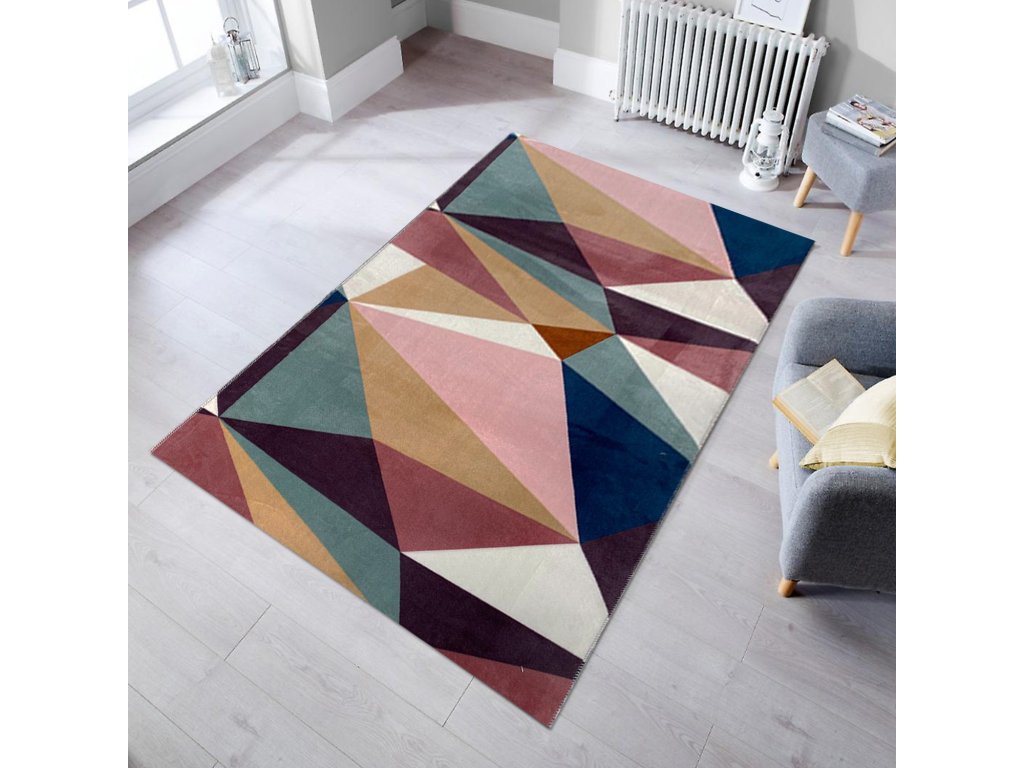 Koberec TRIANGLE 150 x 250 cm se vzorem barevných trojúhelníků.