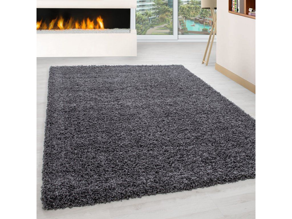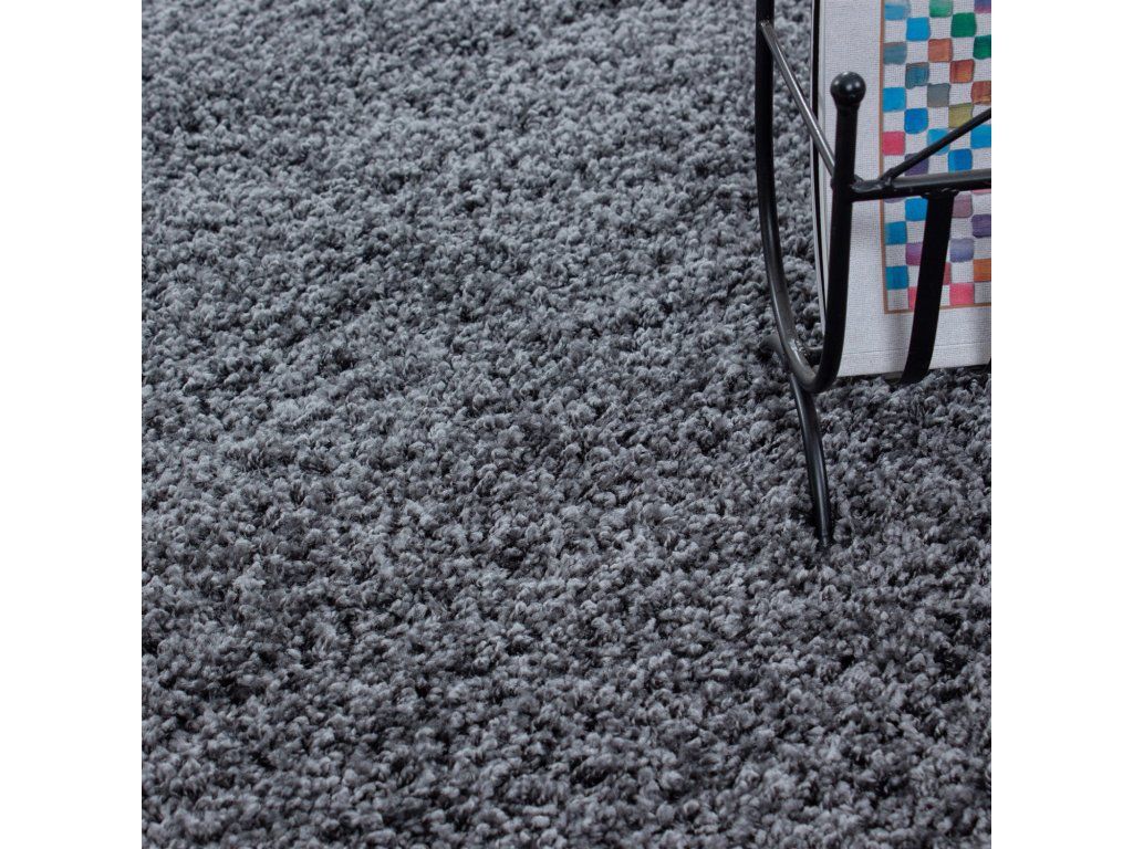 Tmavě šedý koberec PLAIN s vysokým vlasem.