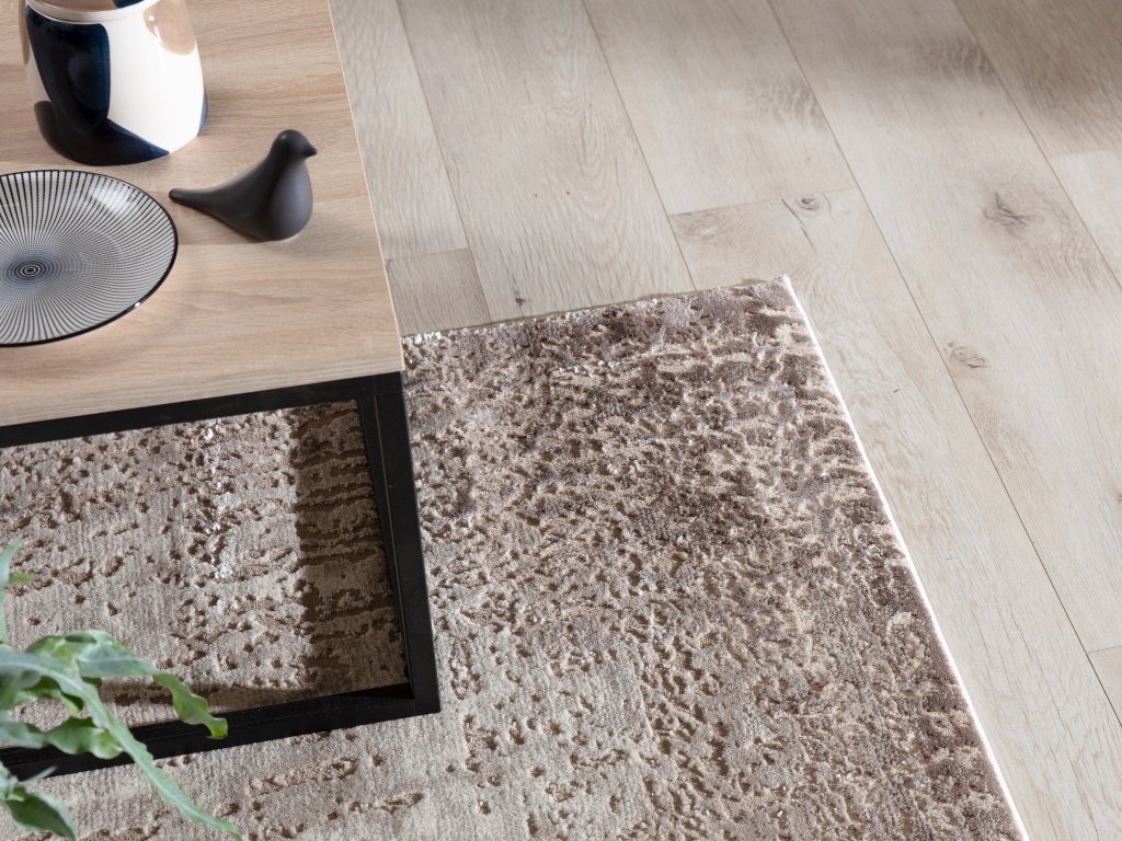Koberec CODRILA BEIGE s trojrozměrným vzorem a béžovým dekorem.