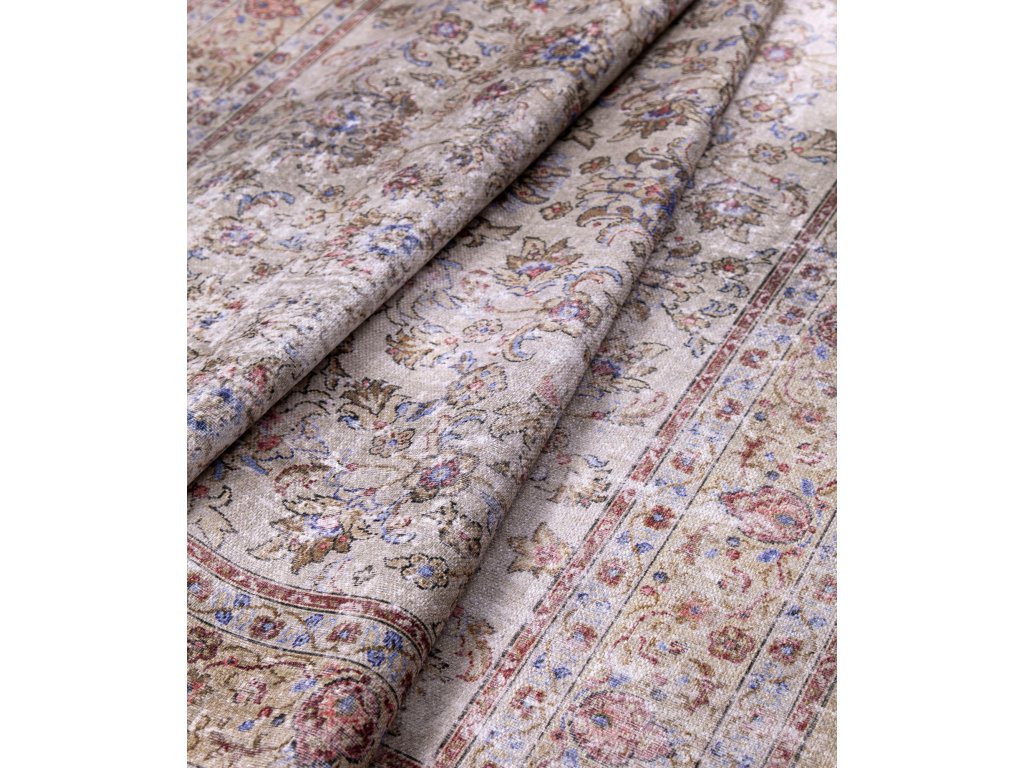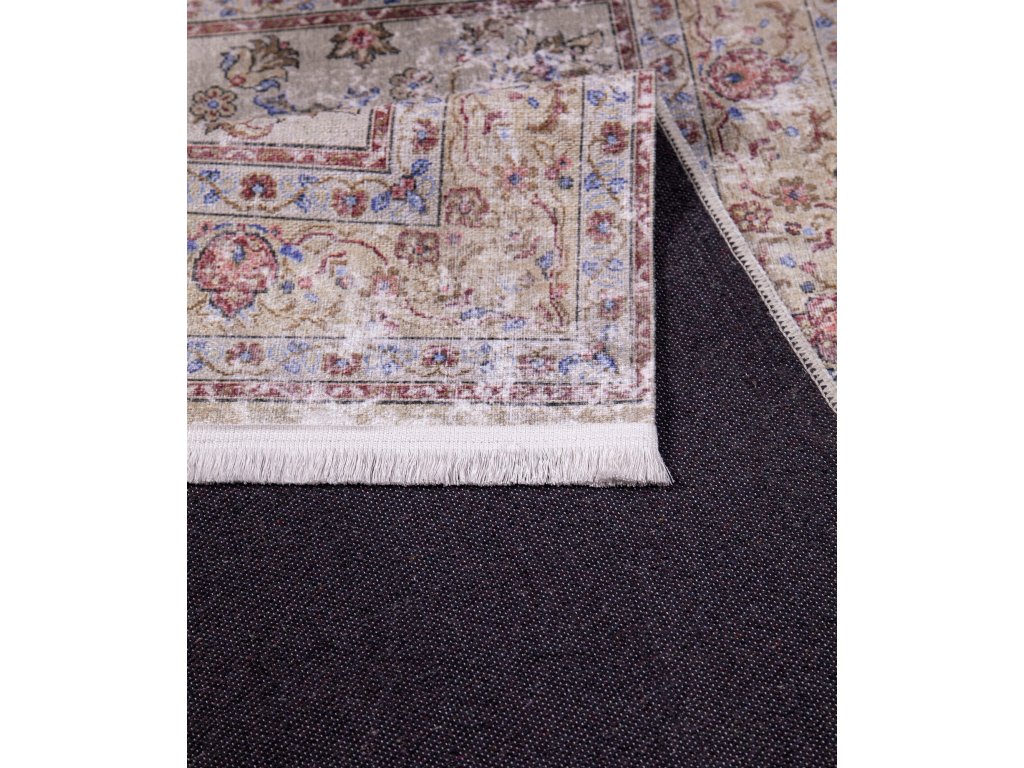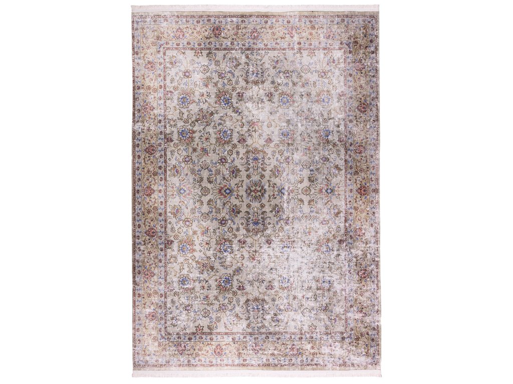 Šedý koberec s perským vzorem.