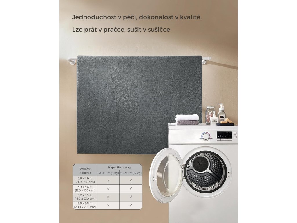 Koberec do ložnice je mimořádně odolný a zachovává si svou měkkost i po delším používání, aniž by se odlupoval. I po několika vypráních v pračce si zachovává svou kvalitu.