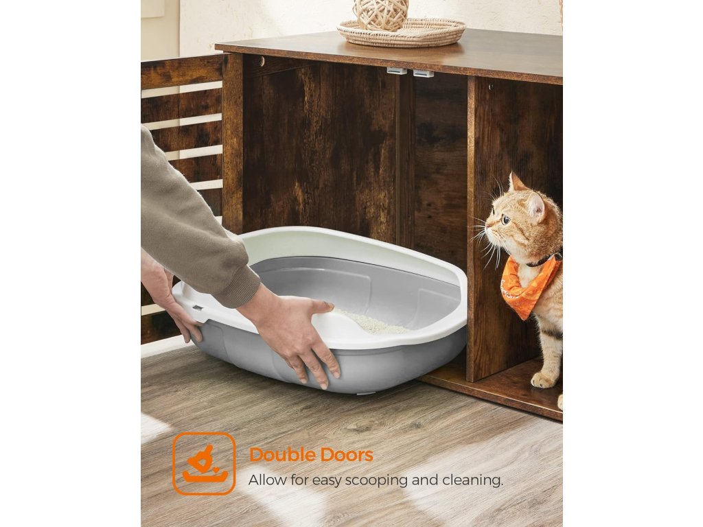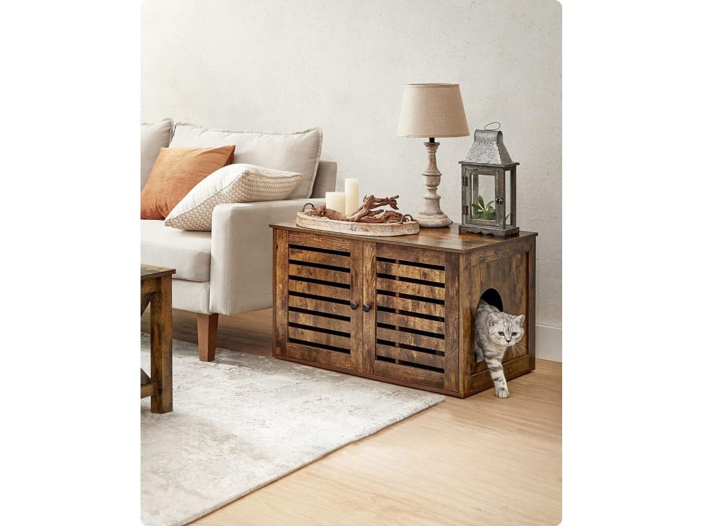 Tato skříňka je opravdu multifunkční! Můžete ji použít jako skrytý box pro kočičí stelivo nebo jako praktický odkládací stolek. Uložte do ní zásobník na stelivo a na plochou desku (s nosností až 60 kg) položte knihy či dekorativní předměty. Tato skříňka je prostě kusem nábytku pro mnoho účelů.