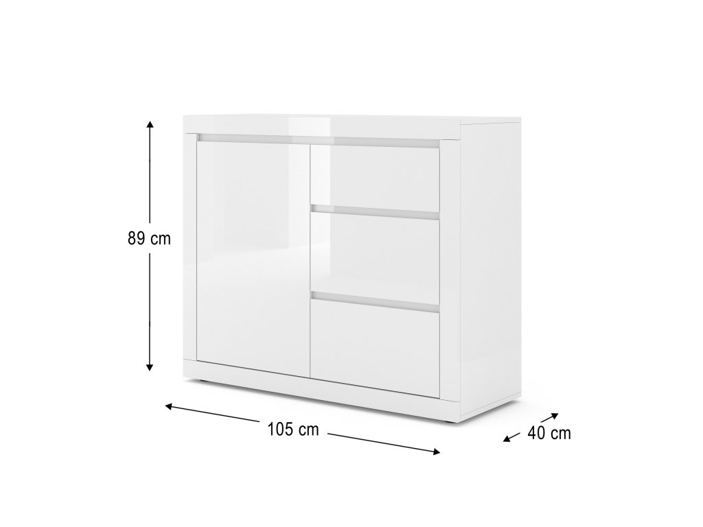 Nová řada komod Bello Bianco v italském stylu zaujme svým minimalismem, elegancí a jednoduchostí. S Bello Bianco si můžete zařídit obývací pokoj, ložnici, ale také elegantní kancelář nebo pracovnu. Komoda nabízí úložný prostor ve třech zásuvkách a v jedné skříňce s jednou polocí.
