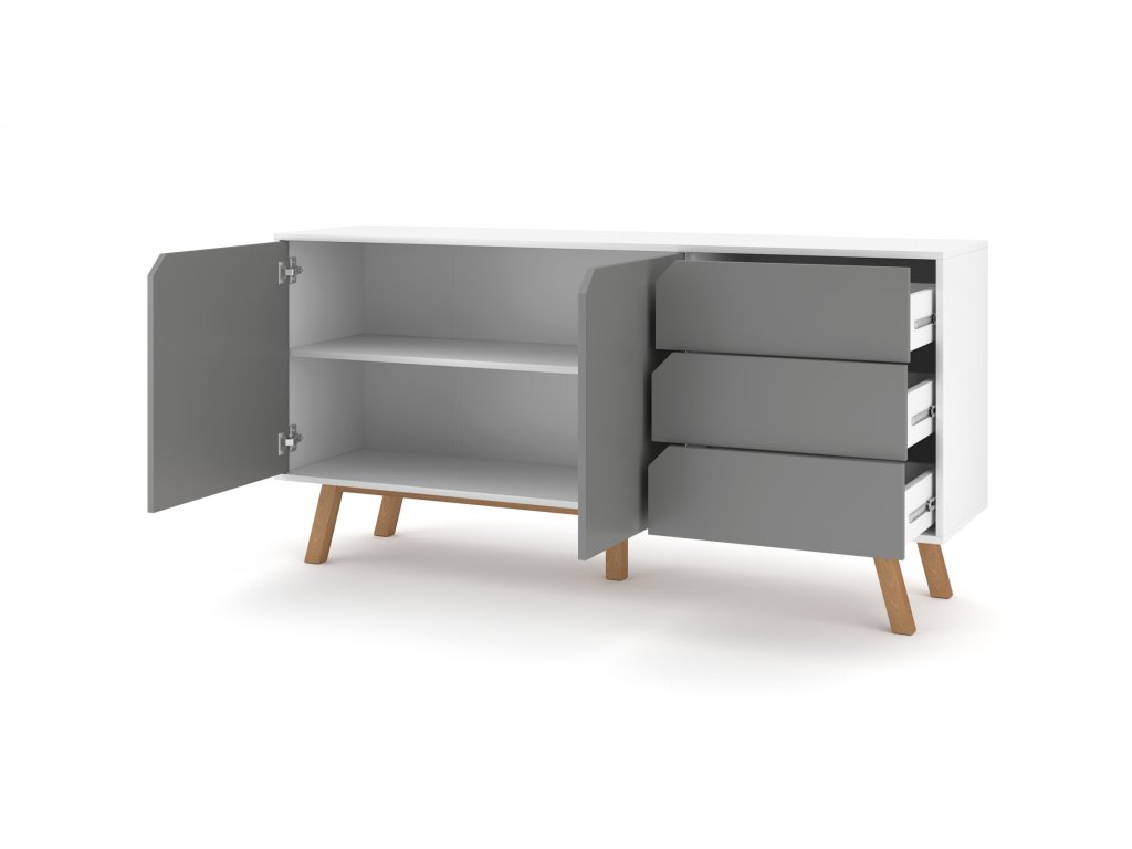 Nízká komoda TOKIO je kus nábytku z kolekce inspirované Dálným východem. Dvířka mají po stranách decentní výřezy, které slouží jako netradiční úchyty. Je vybavena třemi prostornými zásuvkami a dvoudveřovou částí. Uvnitř jsou další police pro udržení pořádku a čistoty. Zajímavým prvkem jsou nohy nábytku, které jsou vyrobeny ze dřeva. Díky nim je prostor pod komodou dostupnější např. pro robotické vysavače.