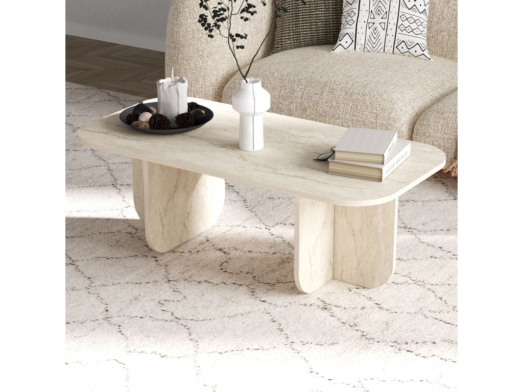 Barva travertinu tohoto konferenčního stolku dodává vašemu domácímu dekoru luxusní a moderní nádech,