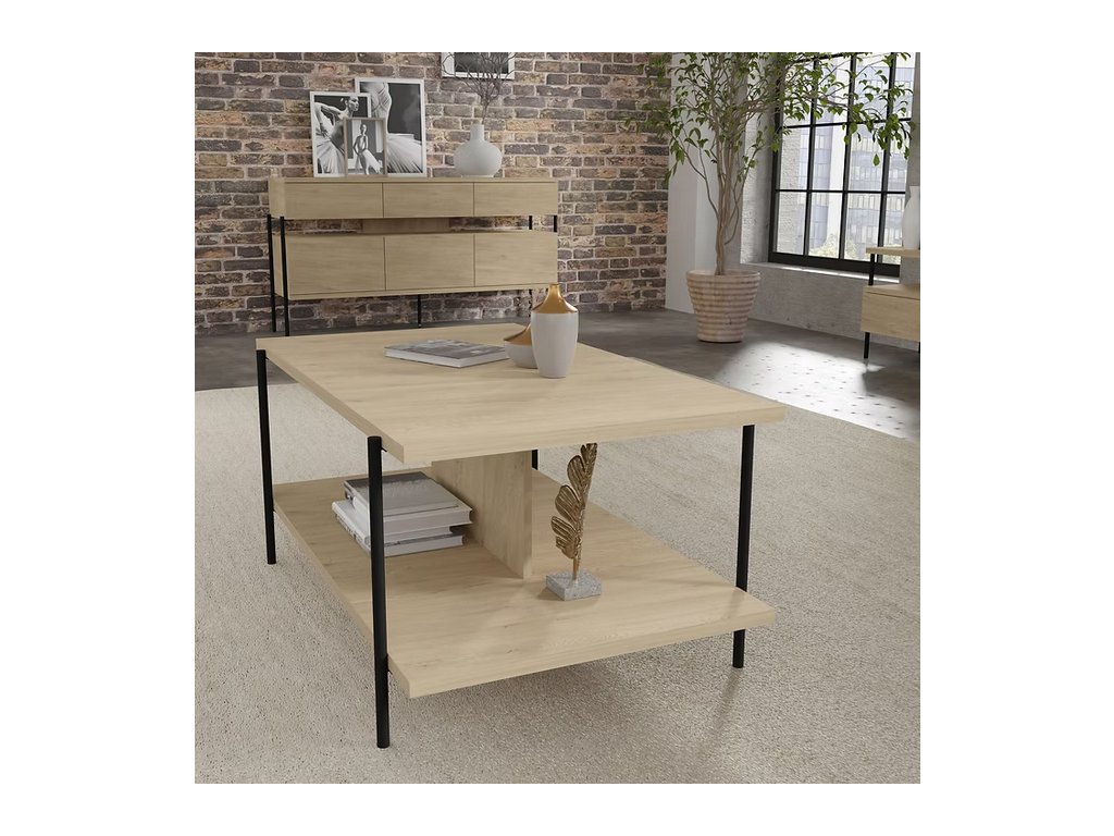 Konferenční stolek z kolekce DRAGONFLY je kombinací přirozeného kouzla dřeva a moderního industriálního designu.