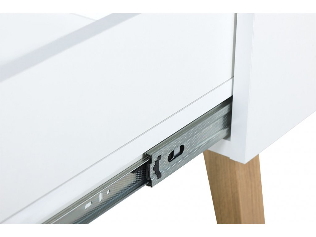 Prostorná, hluboká zásuvka s plným výsuvem a hydraulickými kuličkovými lištami pracuje tiše a spolehlivě.