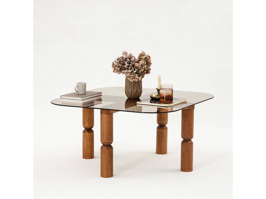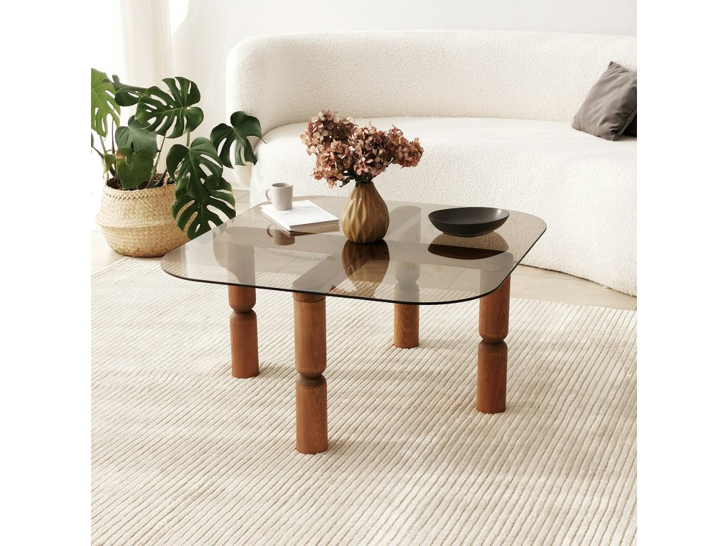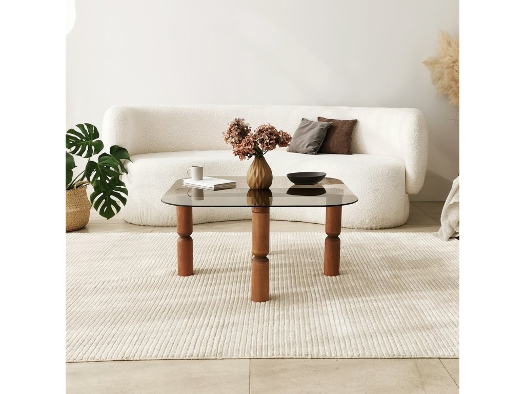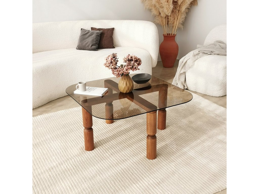 Konferenční stolek má desku ze 100% tvrzeného skla, které nejen zvyšuje jeho vizuální přitažlivost, ale také zajišťuje jeho trvanlivost. Sklo je odolné proti poškrábání a skvrnám, takže je ideální pro každodenní používání. Rám je vyroben ze 100% masivního dřeva, které poskytuje pevný a spolehlivý základ pro váš konferenční stolek.